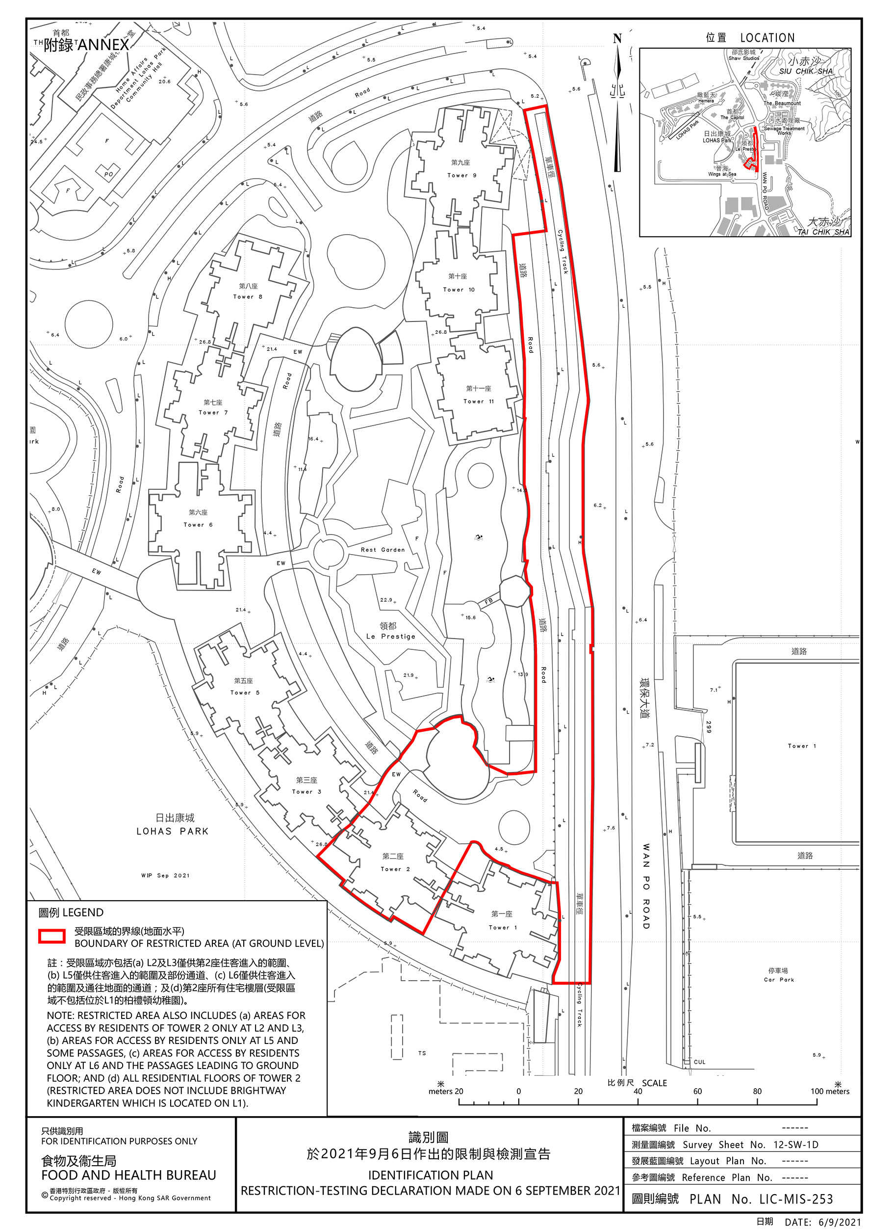 政府今日(9月6日)引用《預防及控制疾病(對若干人士強制檢測)規例》(第599J章),作出限制與檢測宣告,自晚上7時起限制在將軍澳指明「受限區域」,即將軍澳日出康城2A期—領都2座內的人士須留在其處所並接受強制檢測。受檢人士須在其處所等候,直至「受限區域」內所有已識別的受檢人士完成檢測,而相關檢測結果亦已獲大致確定,方可離開其處所。政府目標是在明日上午約7時完成此行動。