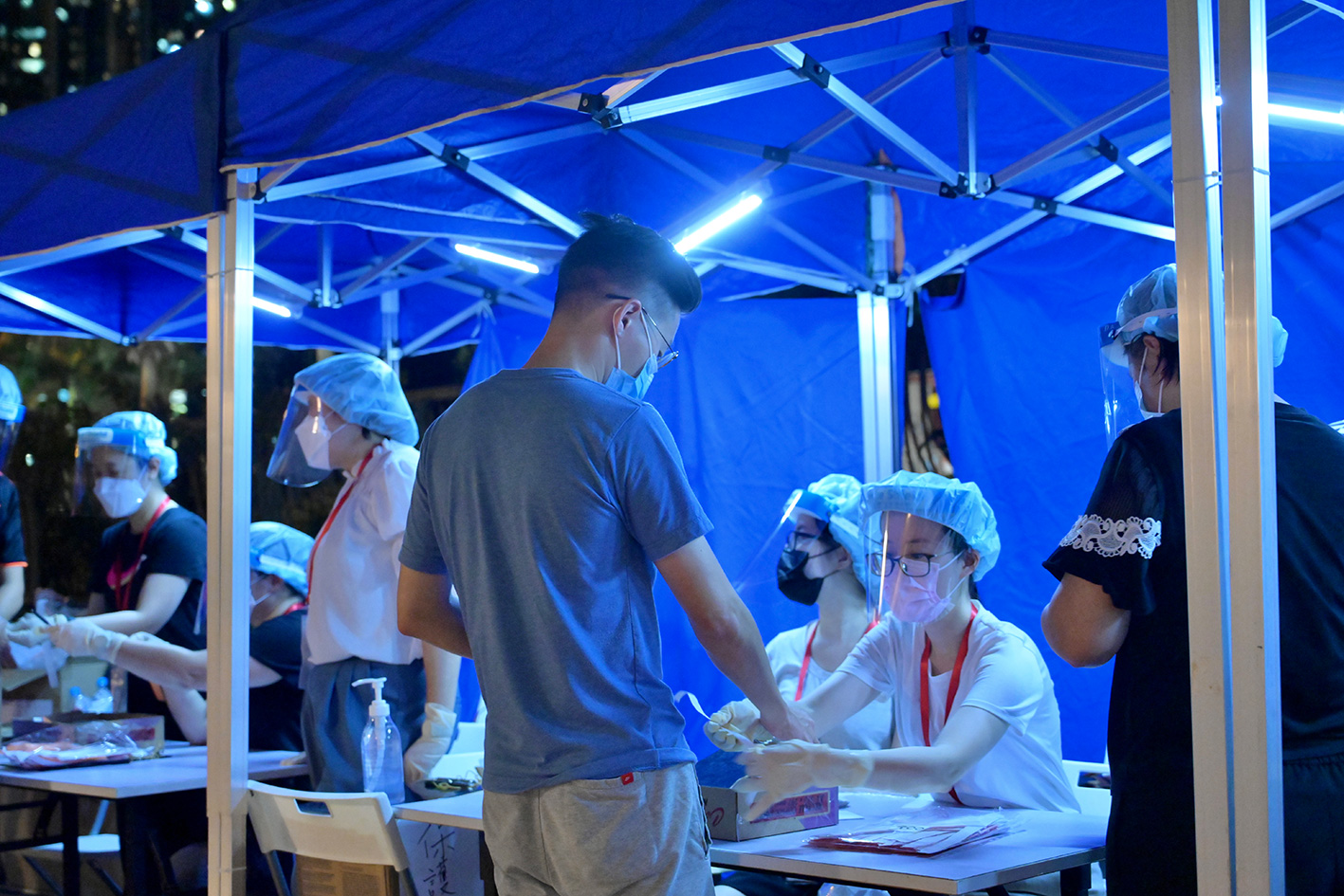 政府昨日於「受限區域」內設立臨時採樣站,並要求受檢人士在今日凌晨1時前到採樣站接受鼻腔和咽喉合併拭子樣本採集及病毒檢測。截至今日凌晨1時,約1340名居民接受檢測,當中沒有發現確診個案。