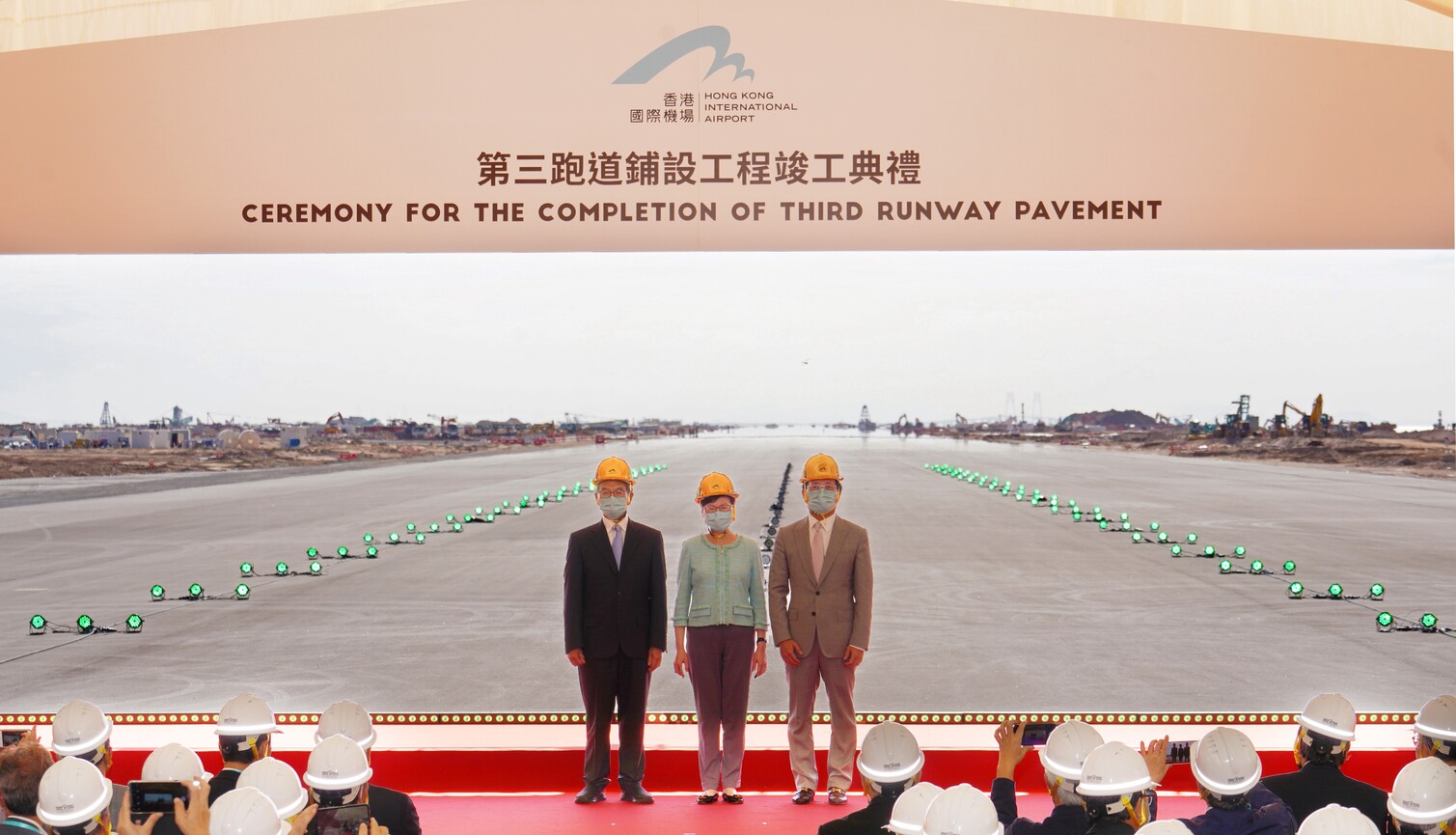 香港國際機場第三跑道今日(9月7日)舉行鋪設工程竣工典禮,由行政長官林鄭月娥主禮。