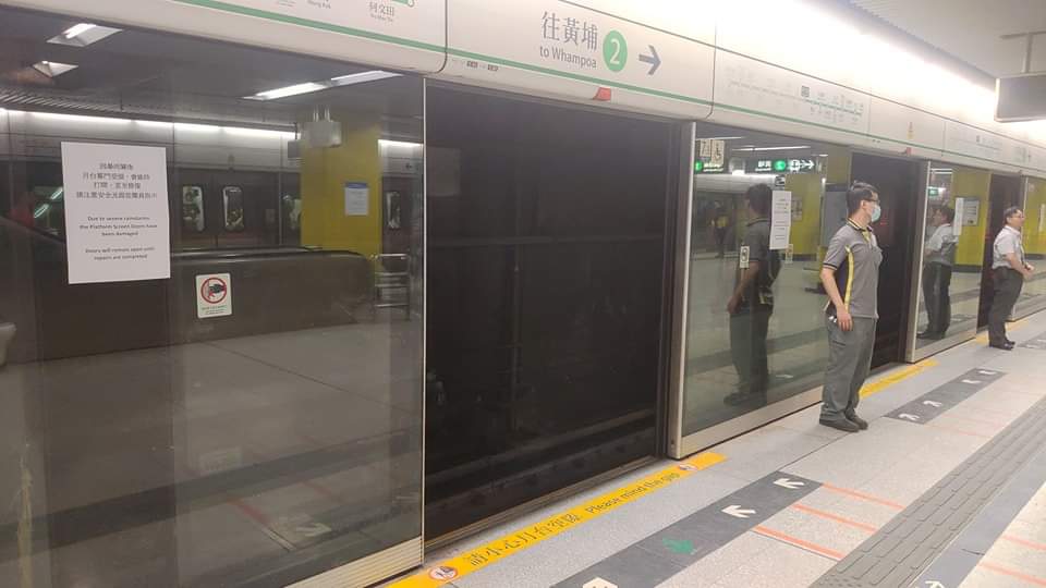 由於部分裝置未及更換,故月台幕門要維持打開,現場仍有個別位置滴水。