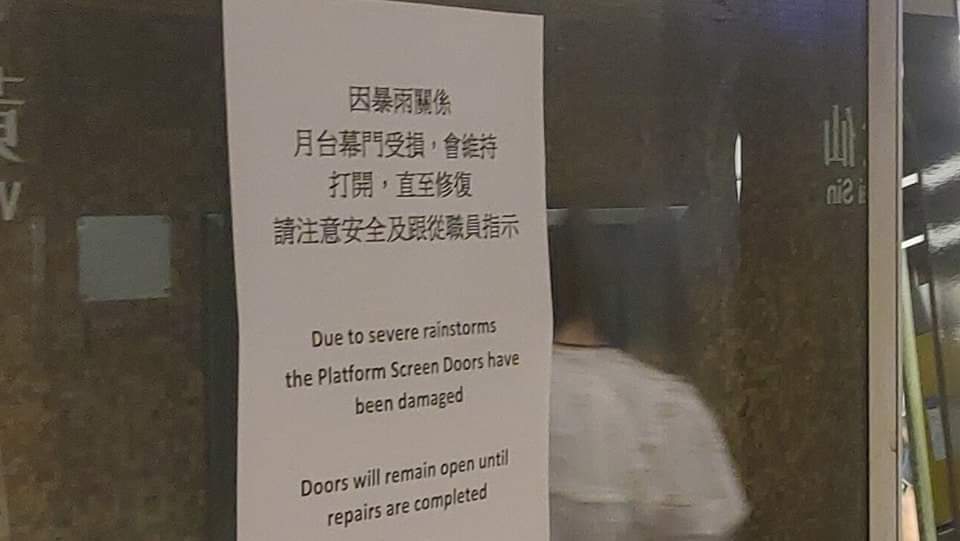 港鐵表示,黃大仙站部分設備因水浸損壞,復修需時,B3出入口仍需關閉,預計排隊出入閘及候車時間可能較長。部分月台幕門已回復...
