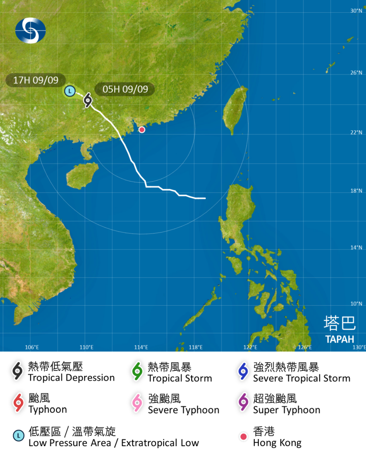 天文台於今日(9月9日)凌晨4時20分,解除所有熱帶氣旋警告。