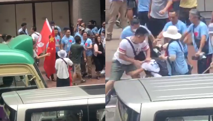 根據網上的片段所見,有手持五星旗男士,追打一名年青人,而且更有暴徒施展起飛腳。