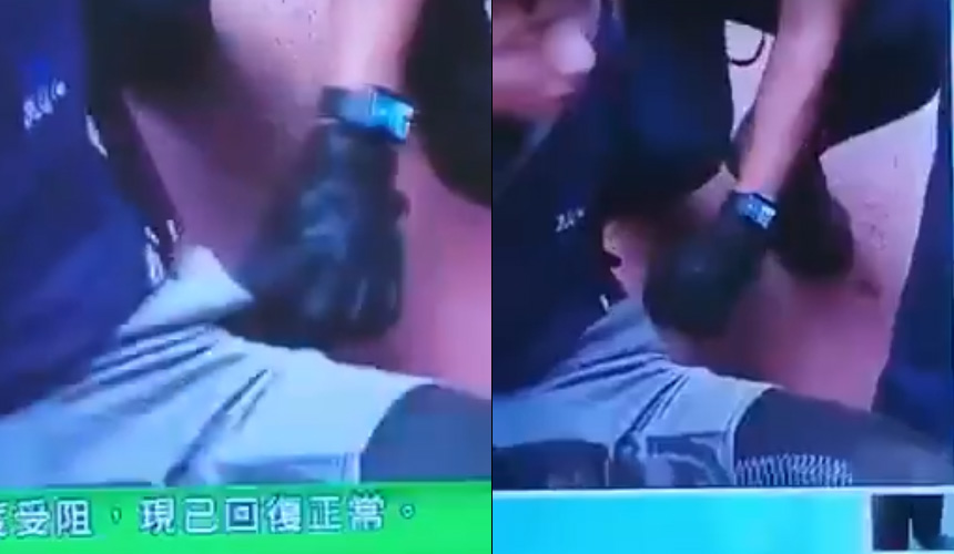 Soon afterwards, a video clip from television station TVB’s 3:33pm news bulletin was circulated online, showing a police officer placing what looks to be a knife into an apprehended male’s pants pocket, which has again raised the suspicion of police trying to fabricate false, incriminating evidence.