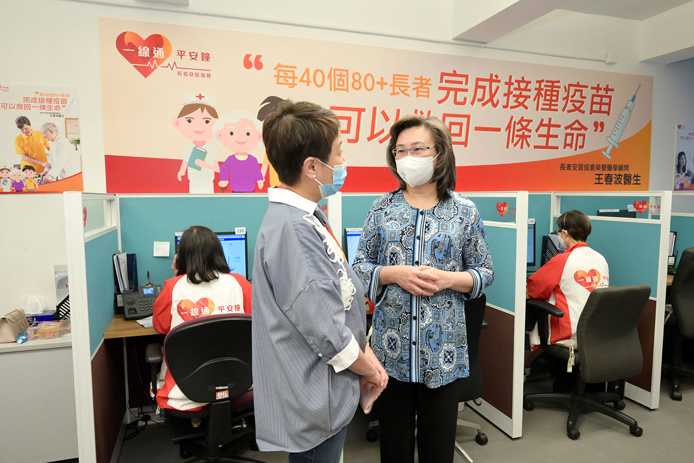 政府本月委託長者安居協會接觸一線通平安鐘服務使用者,向尚未接種新冠疫苗的長者講解接種疫苗的重要性,希望透過長者信任的夥伴,將接種疫苗的訊息有效地傳達給他們。若長者同意打針,協會職員會協助他們預約服務,有需要的長者亦可採用機構提供的陪診服務到各接種點打針,相關費用會由政府承擔。