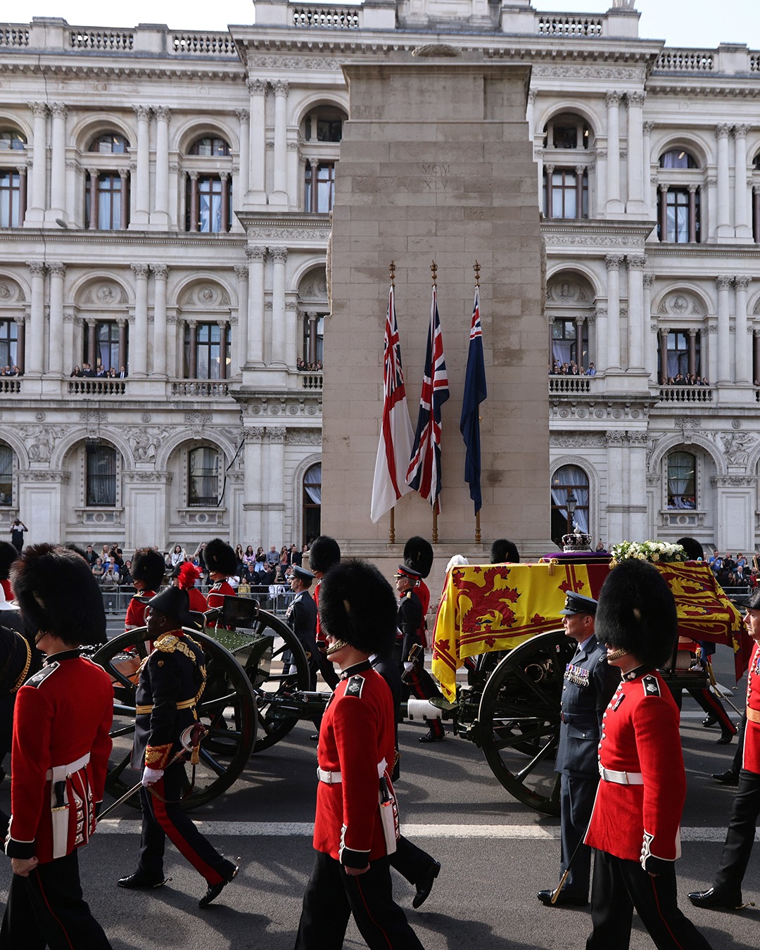 英女皇伊利沙伯二世的靈柩,周三(9月14日)下午由白金漢宮移送至國會大樓的西敏廳,供公眾弔唁。