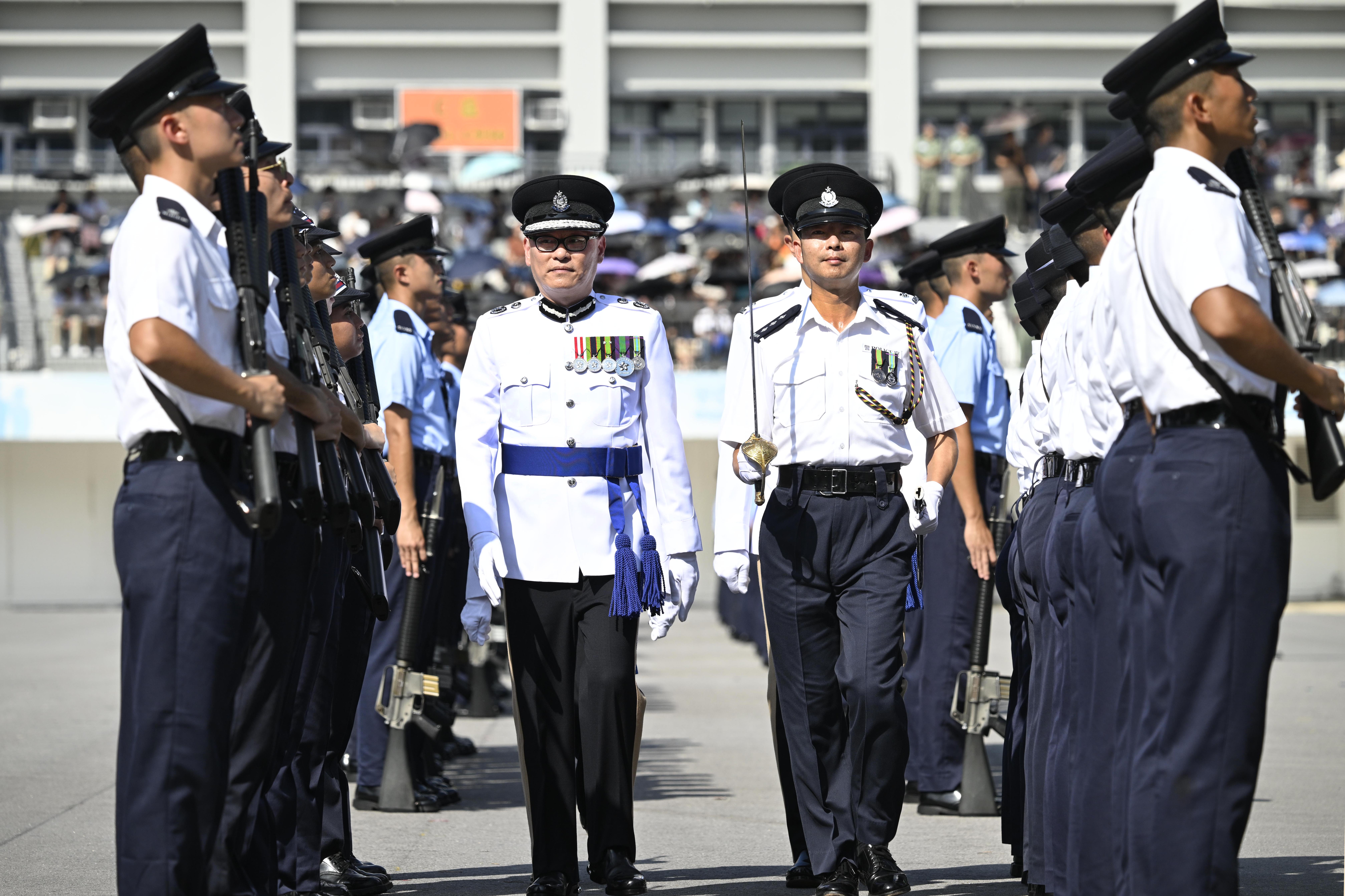 警務處副處長(國家安全)簡啟恩今日(9月14日)出席香港警察學院結業會操,檢閱29名見習督察及164名學警,見證他們正式成為警隊的一分子。