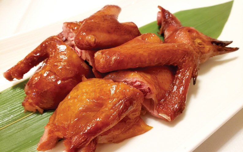 造訪當日,品嚐多道菜式,當中有幾款印象特別深刻。「茶香菊花煙燻乳鴿」皮脆肉嫰,除了選用幼鴿,火喉控制得宜亦是令肉質保持鮮嫩的主要原因。另外,煙燻過的鴿肉,滲出淡淡茶葉香,無需沾醬,經已美味非常。