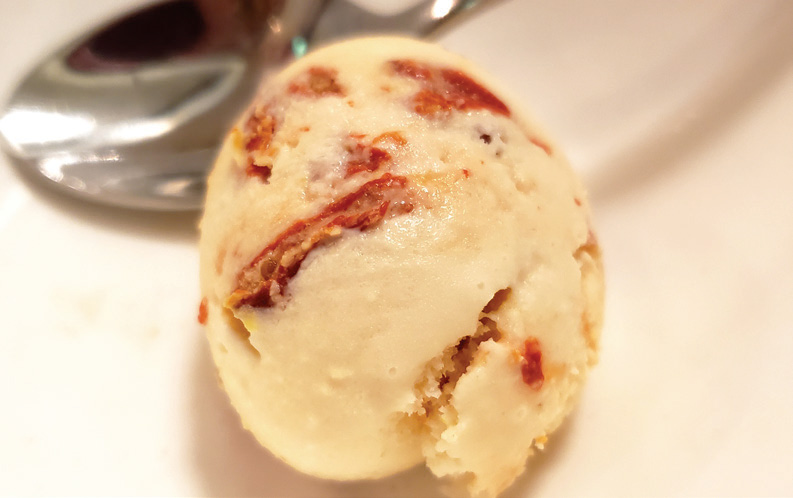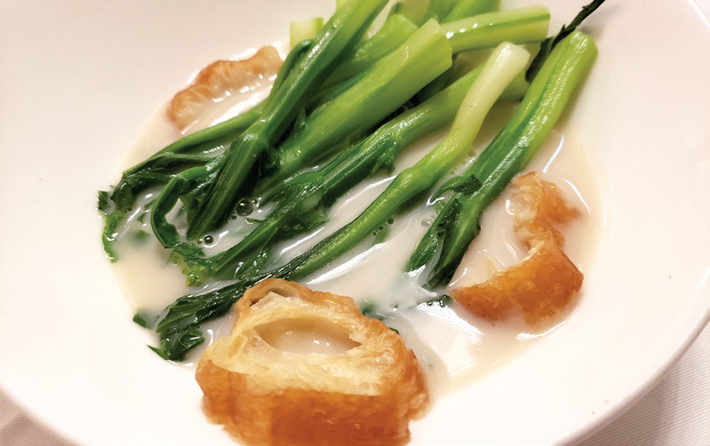 至於「魚湯浸菜苗」,看似平平無奇,惟伴碟放湯的幾片油條,卻起畫龍點眼之效,點出魚湯確是真材實料。菜苗只選取最翠嫩部份,因此絕不會吃到菜渣。甜品「杏仁茶配杞子雪糕」,一熱一冷,杏仁茶淡淡的甜味帶出濃厚杏仁味,雪糕亦奶香十足。