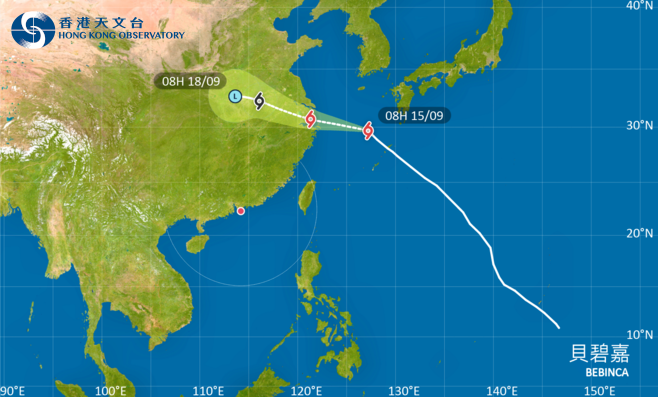 在正午12時,颱風「貝碧嘉」集結在上海之東南偏東約500公里,預料向西或西北偏西移動,時速約22公里,橫過東海並逐漸靠近華東沿岸。