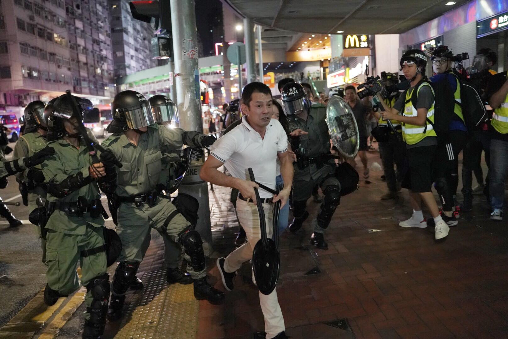 至於手持摺櫈男子,本台清楚拍攝到該人容貌,究竟他有沒有被捕,又是否獲護送離開,聲明並無提及。
