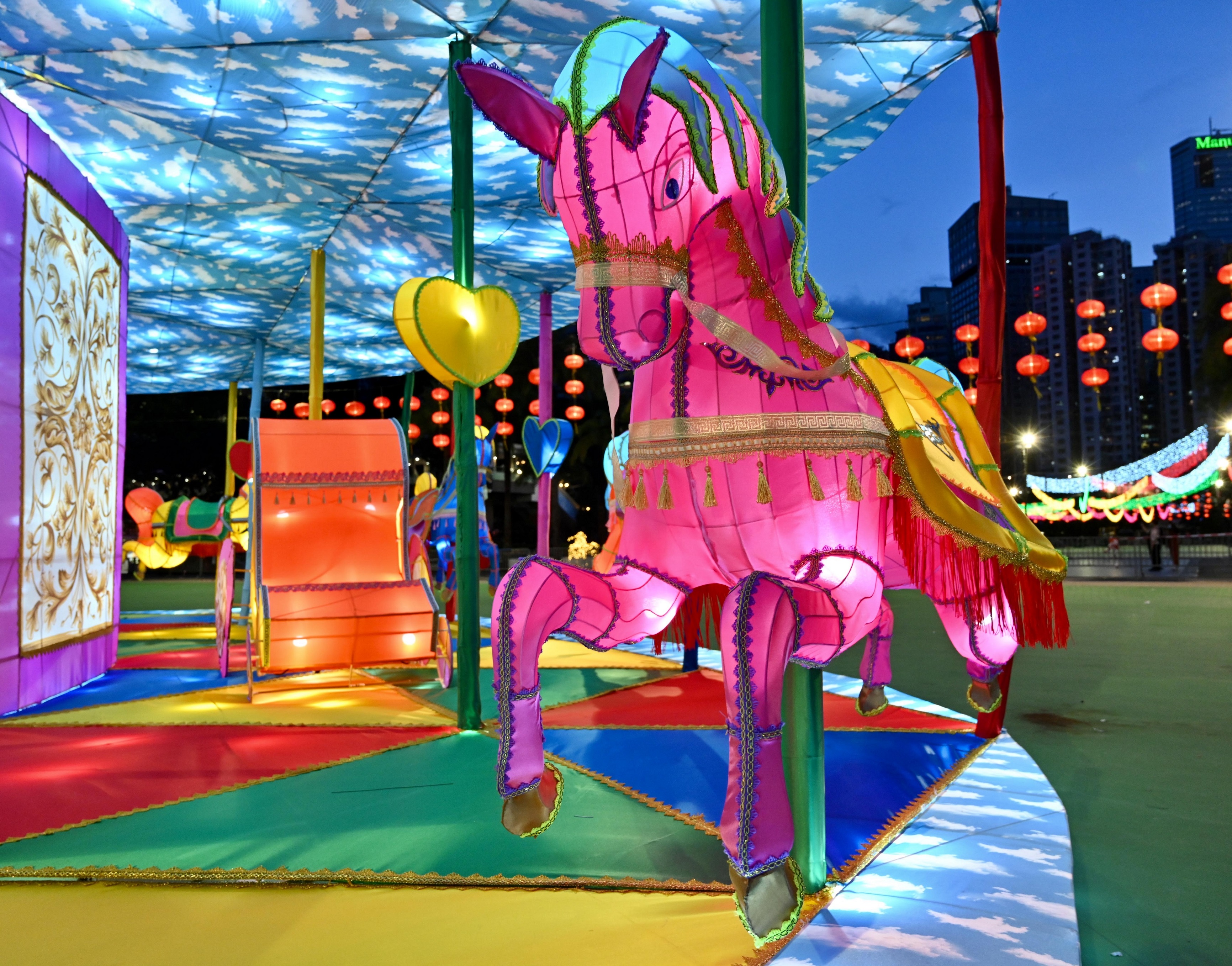維多利亞公園的6個足球場將展示多組繽紛燈飾,當中的迴旋木馬燈飾由本地紮作藝術家許嘉雄師傅創作,高達六米;其他燈飾包括由中小學學生親手製作的花燈及造型為千姿百態的紅鶴、共聚天倫的大象、歡樂迎月的相思鳥及雙子兔的燈飾。