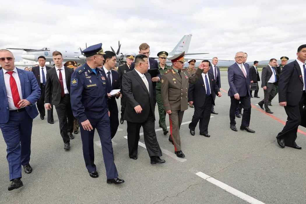 俄羅斯國防部長紹伊古在機場迎接,金正恩之後登上俄羅斯護衛艦「沙波什尼科夫元帥號」,聽取俄羅斯海軍總司令葉夫梅諾夫介紹。