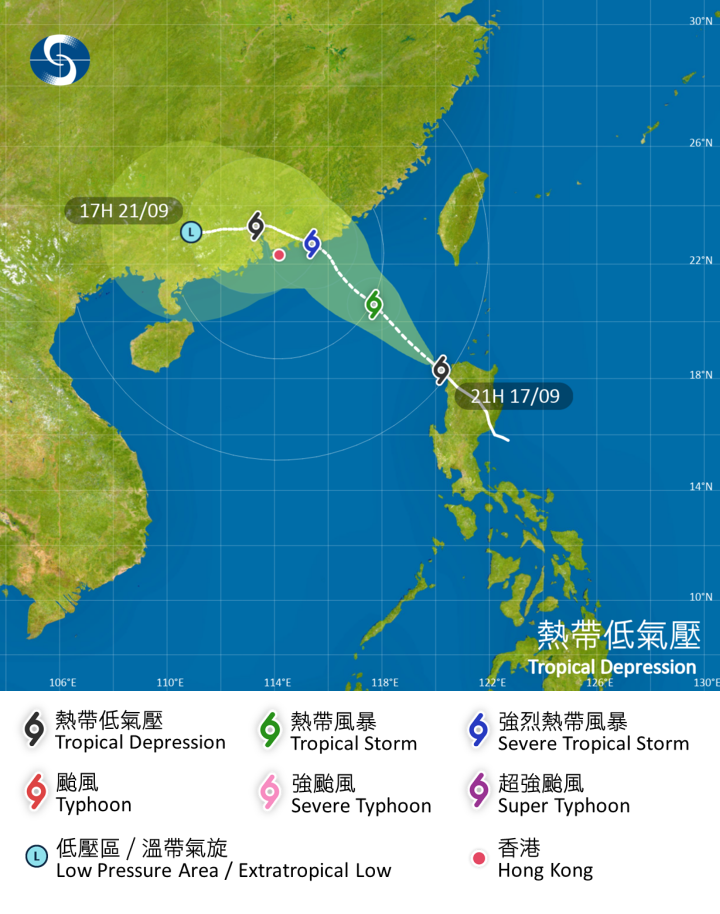 天文台表示該熱帶氣旋會在未來一兩日橫過南海東北部,並逐漸增強。該熱帶氣旋的環流較為細小,並會在今晚及明早(9月18日)與香港保持超過400公里距離,一號戒備信號會在明日中午前維持。