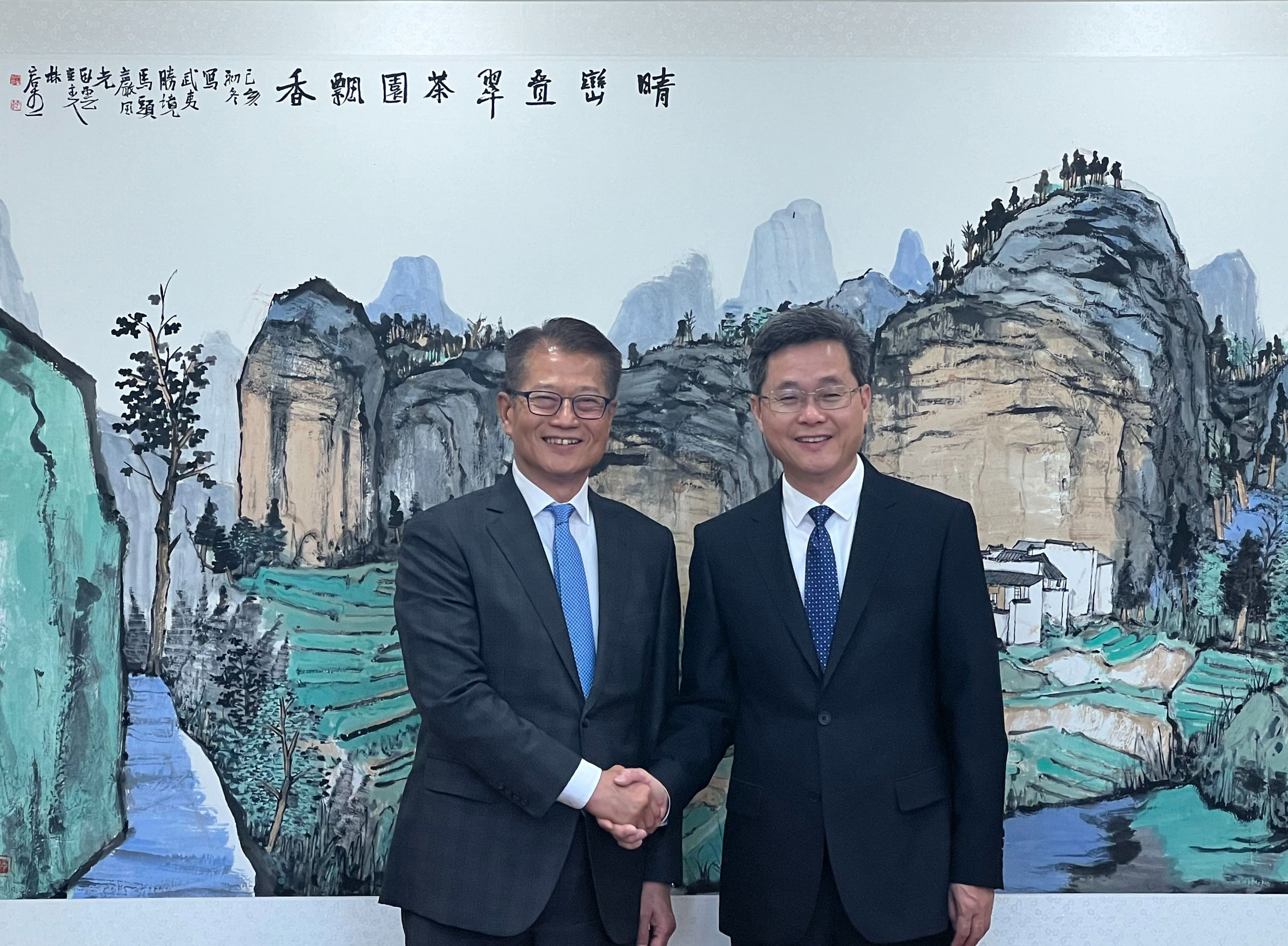 隨同行政長官到北京訪問的財政司司長陳茂波,今日(9月19日)下午拜會了國家財政部部長藍佛安,感謝財政部一直以來對香港的多方面堅實支持。雙方亦就內地、香港和國際的經濟和金融情況、香港國際金融中心的發展、兩地金融市場的互聯互通,以及加強內地在港上市公司審計的監管合作等議題深入交流。