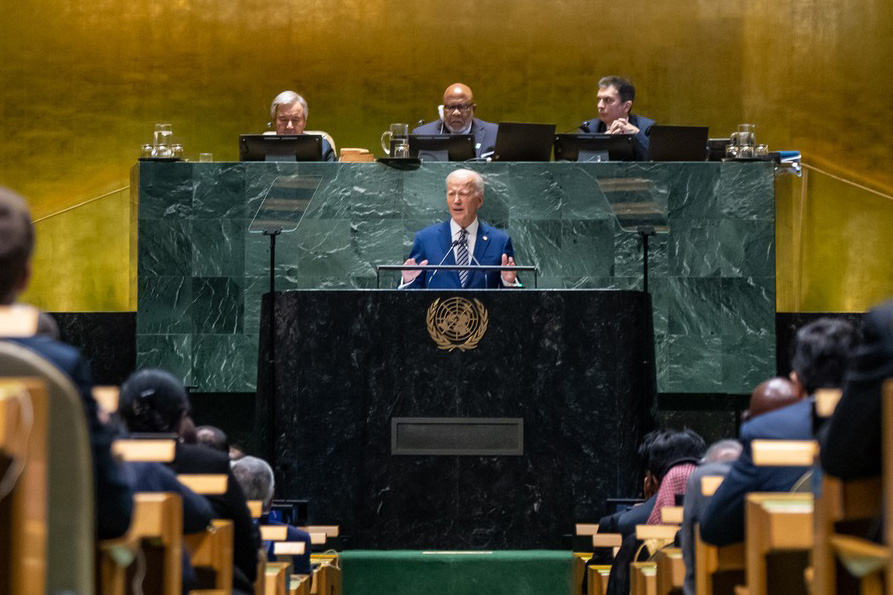 拜登的演說約28分鐘,側重呼籲國際社會共同面對戰爭、氣候甚至人工智能(AI)發展帶來的挑戰,並說美國追求為全人類創造更安全、更繁榮、更公平的世界。