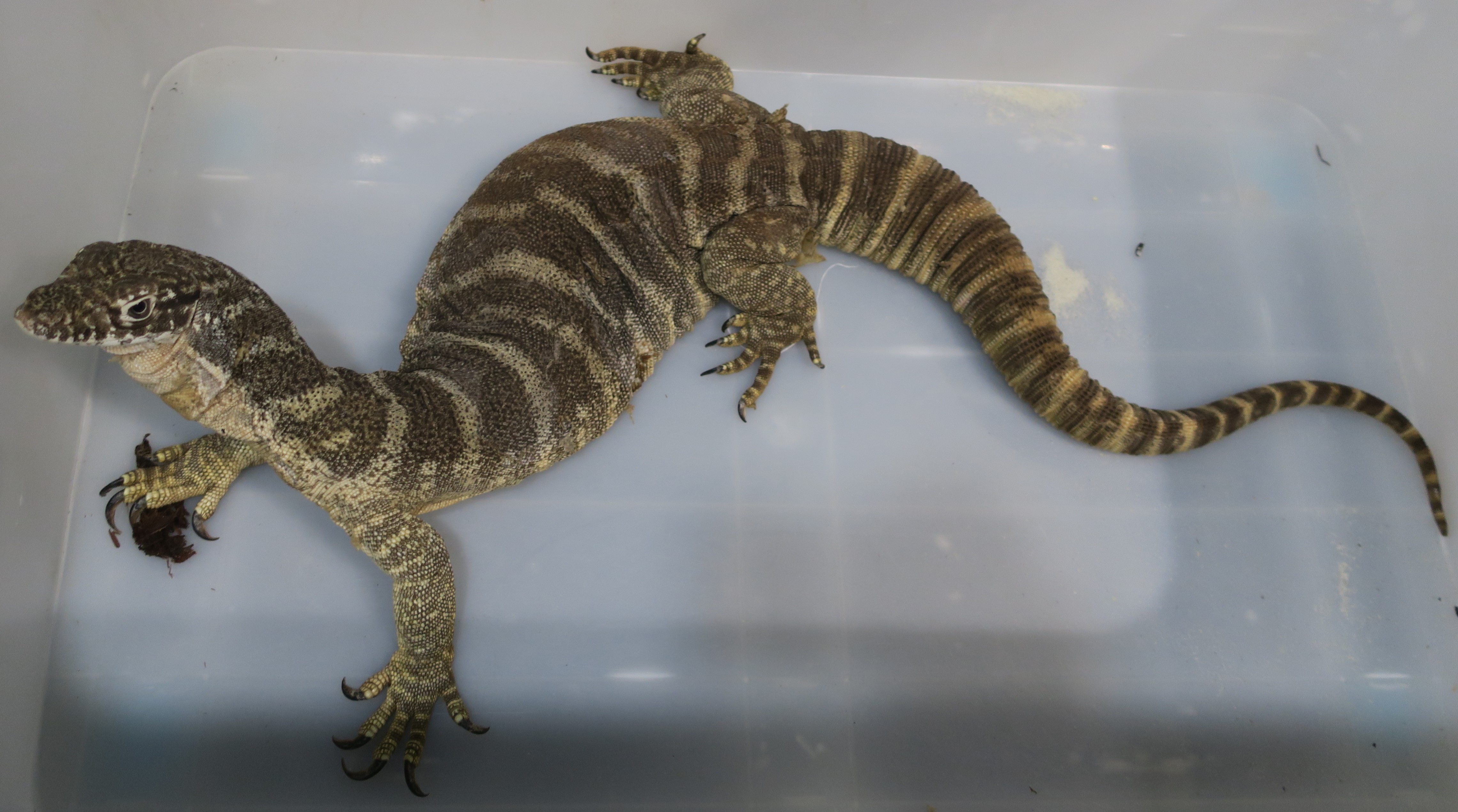 漁護署今日(9月23日)在一展覽檢獲懷疑被非法管有的三隻活體瀕危動物及一件瀕危動物標本,涉及一隻綠鬣蜥、一隻史氏巨蜥、一隻金錢龜及一件非洲灰鸚鵡標本。