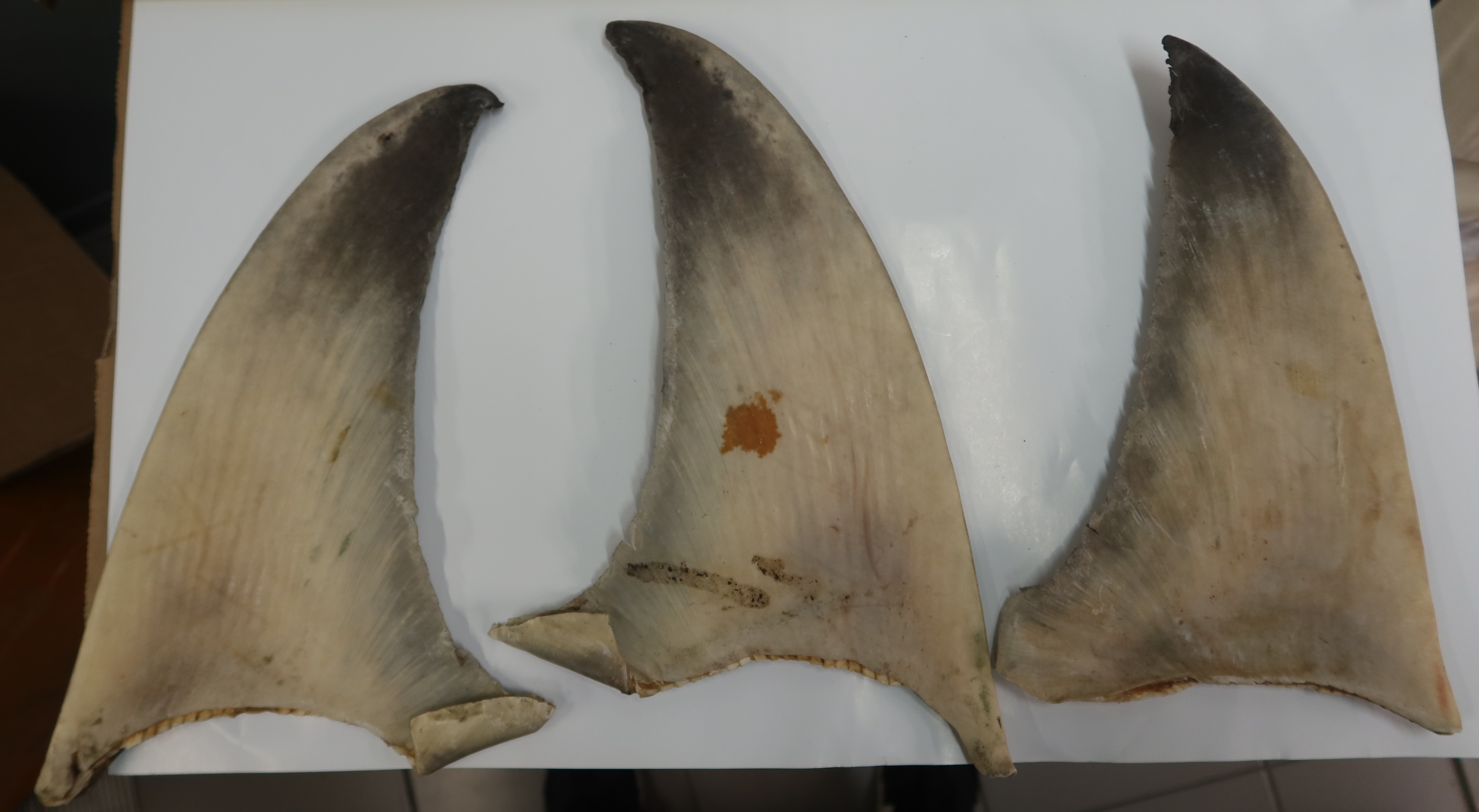 漁護署人員隨即檢取行李內逾450公斤乾魚翅作進一步調查,經詳細檢驗證實該批魚翅涉及多個鯊魚物種,當中約100公斤屬《公約》附錄II物種的鐮狀真鯊、長鰭真鯊及雙髻鯊魚翅,價值約44萬元。