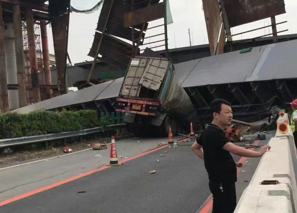 今日(9月24日)早上,江門和中山交界的一段高速公路,有建築中的部件跌落,壓中一架貨車。