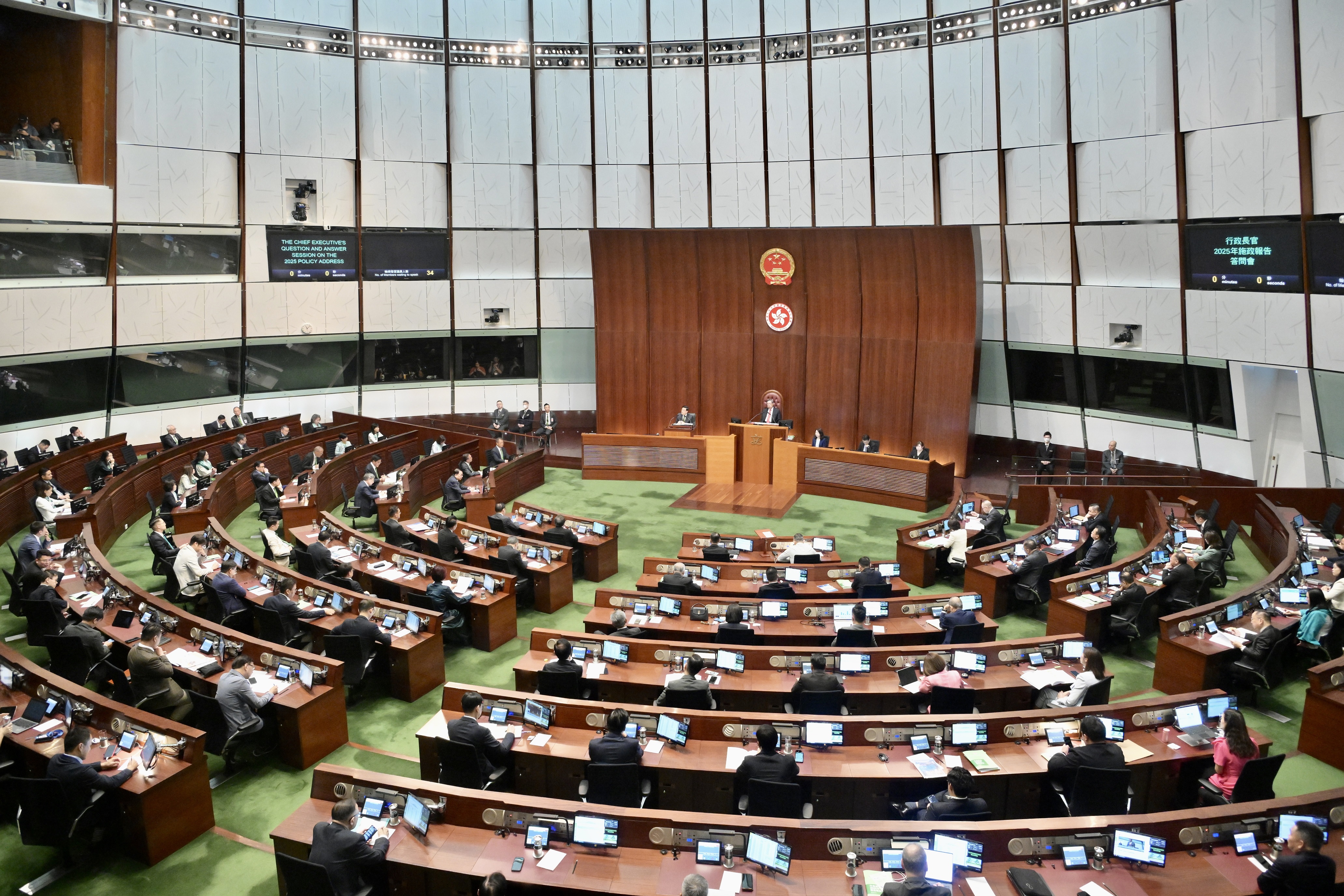 他指一個月後,本屆立法會會期便會中止。一如以往,立法會在會期中止前的工作特別繁忙緊湊。現時仍有若干項重要、具立法效力並與本港發展或民生息息相關的法案尚待處理,包括改善基層市民居住環境的《簡樸房條例草案》;在新批土地先行實施業權註冊制度的《2025年業權及土地的註冊(雜項修訂)條例草案》;規管網約車服務的《2025年道路交通(修訂)(網約車服務)條例草案》,以及由議員提出的《2025年香港浸會大學(修訂)條例草案》。立法會亦將於10月8日起一連3天進行2025年施政報告議案辯論。