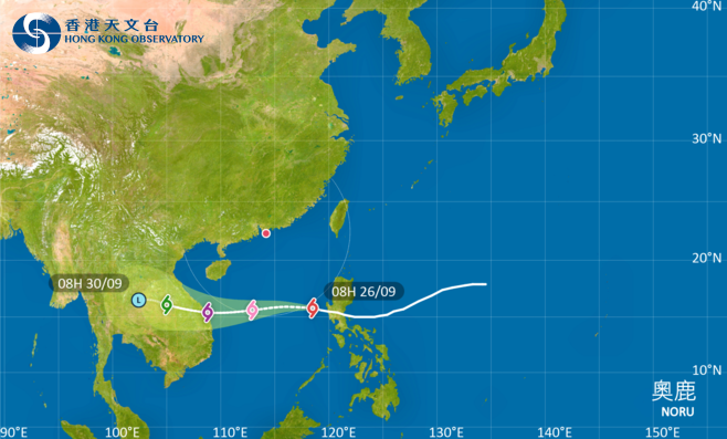 按照現時預測路徑,颱風「奧鹿」會在未來一兩日橫過南海中部,移向越南中部一帶。
