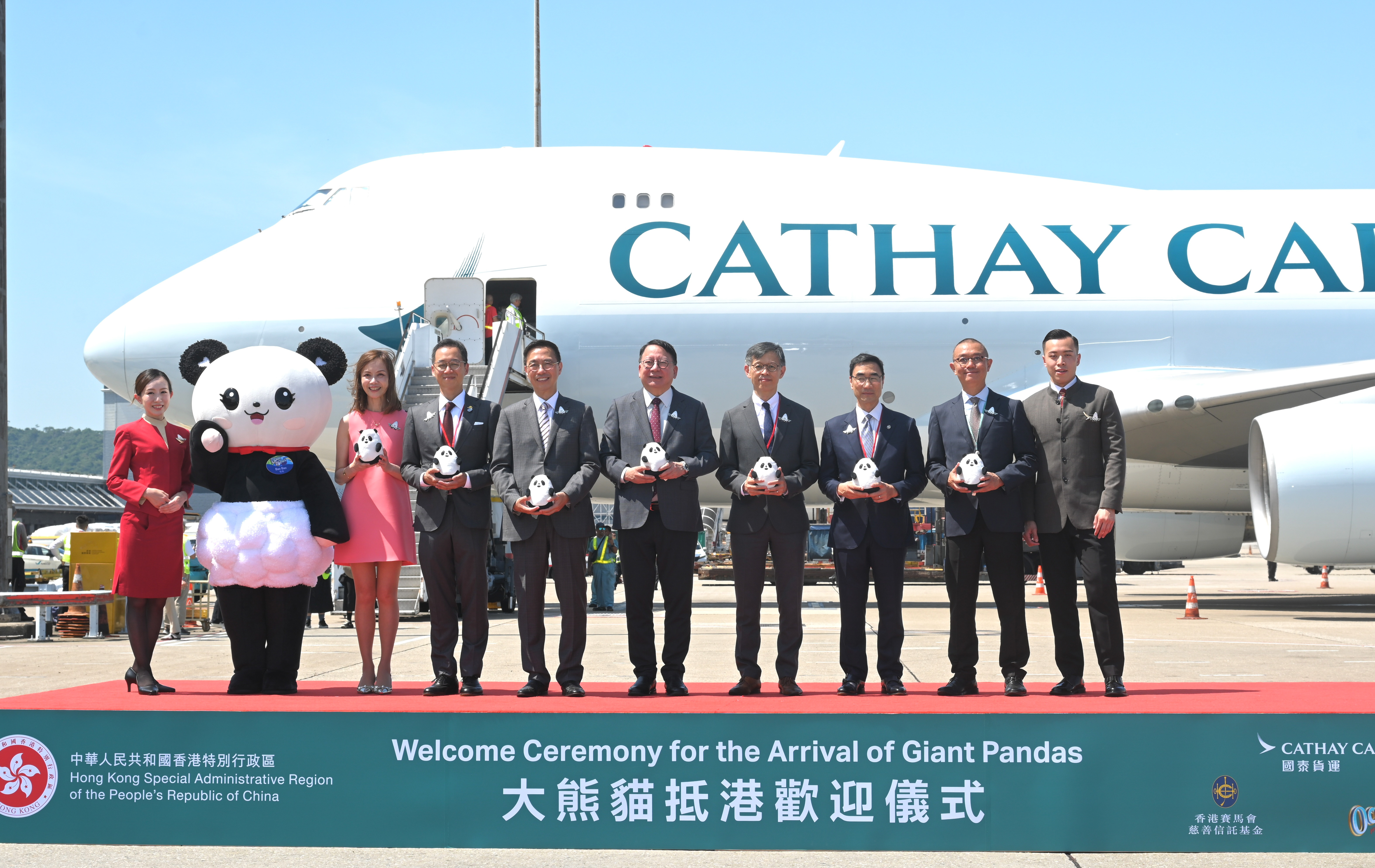 他亦要感謝國泰貨運,安排及贊助這次大熊貓從四川到香港海洋公園的整個運輸過程;以及感謝香港賽馬會慈善信託基金,贊助改善大熊貓在海洋公園的新居設施,讓牠們「住得舒適」,以及資助有關大熊貓的保育教育工作。