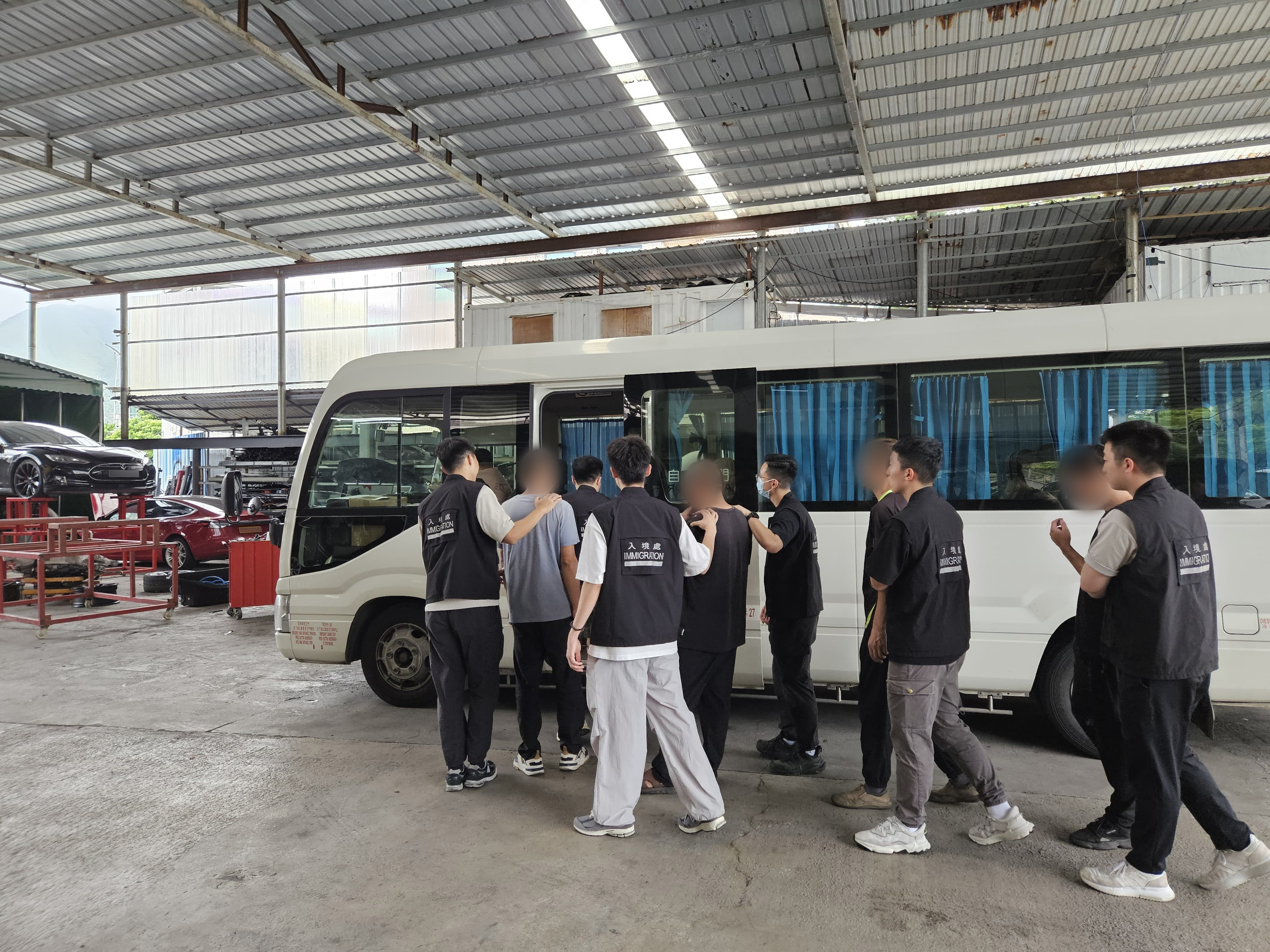 反非法勞工行動中,入境處特遣隊人員搜查了37個目標地點,包括車房、裝修中單位及餐廳,共拘捕6名懷疑非法勞工。被捕的懷疑非法勞工為6名男子,年齡介乎24至43歲。