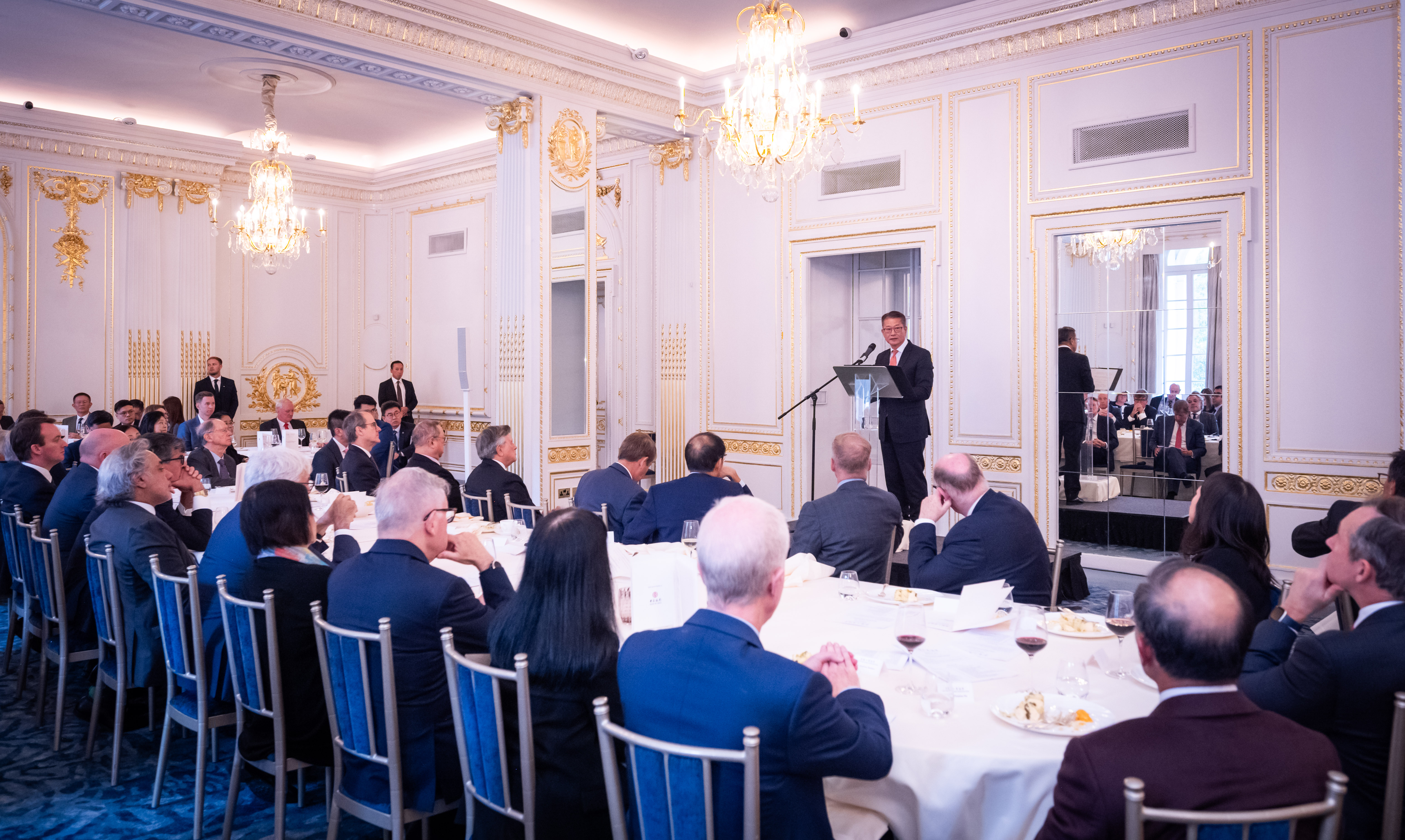 陳茂波其後出席了英國香港工商協會舉辦的午餐會,向約150名英國政商界嘉賓發表演說。他表示,在國家的堅實支持下,香港經濟穩步向前發展,並正全力推進「八大中心」的建設工作,尤其推動以金融、創科為本港未來發展的主要「雙引擎」。他以綠色金融為例,指出香港正全面發展成為國際綠色科技和綠色金融中心,除了綠色及可持續融資外,也全力支持綠色科技的發展,並積極對接國際綠色標準,包括在可持續金融分類目錄,以及可持續披露財務報告準則方面。陳茂波也介紹了香港創科發展方面的四大主要領域,以及香港投資管理有限公司作爲「耐心資本」,如何發揮資本牽引的力量,引導更多私人市場的長期資金投資到策略性產業,以加速推動其生態圈建設的工作。