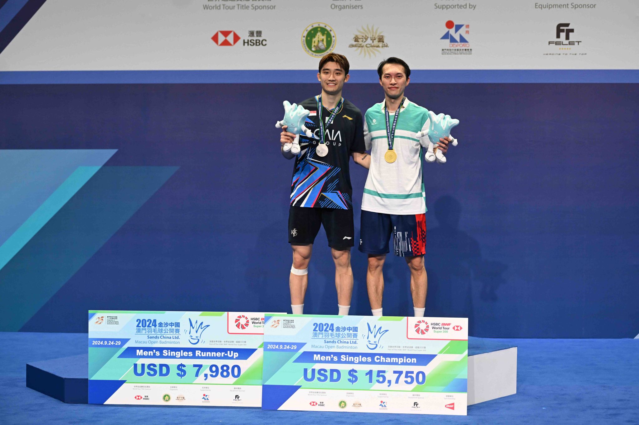 港隊羽毛球代表伍家朗揚威澳門,勇奪冠軍,繼去年3月德國公開賽之後,再次於世巡賽封王,結束一年半的錦標荒。