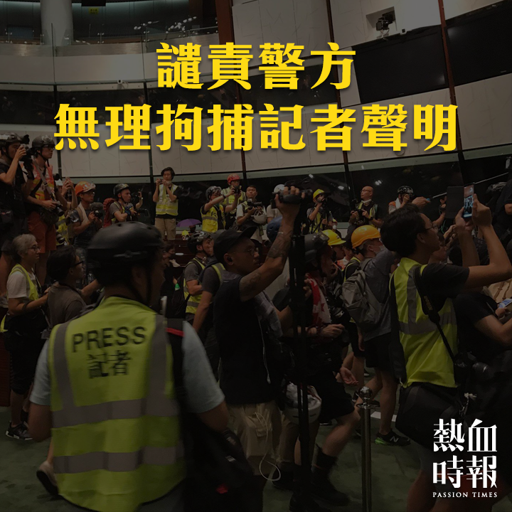 《熱血時報》記者於2019年9月30日早上,因採訪工作而被警察上門拘捕,《熱血時報》對警方是次無理拘捕,予以譴責!
