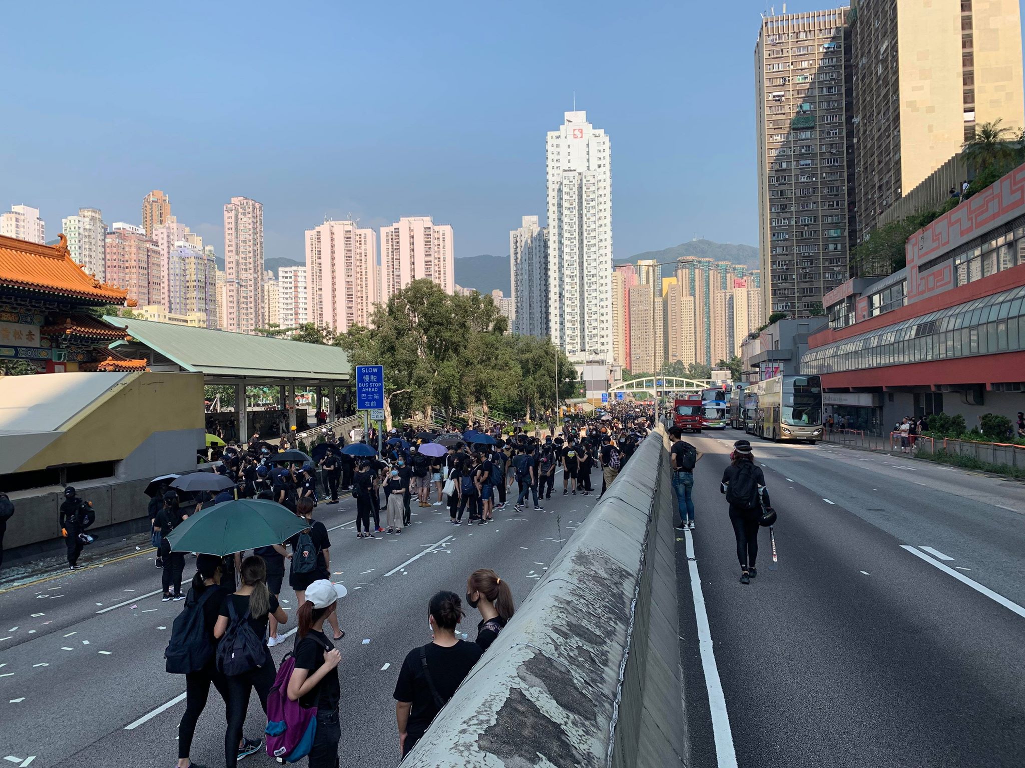 警方表示,大量激進示威者於黃大仙龍翔道堵路,癱瘓交通。