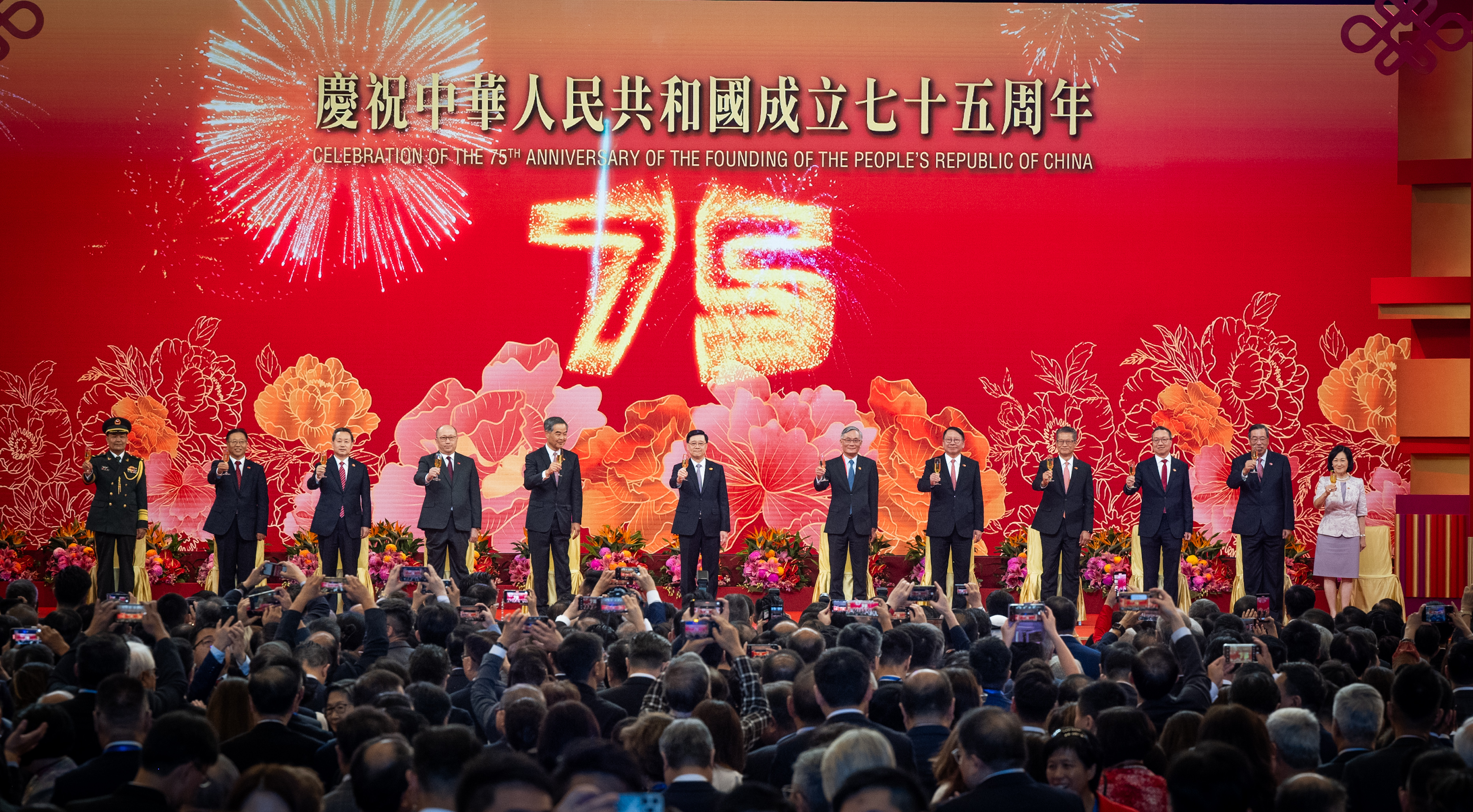 今日(10月1日)是中華人民共和國成立75周年,特區政府在灣仔金紫荊廣場舉行升旗儀式,之後在會展舉行國慶酒會。