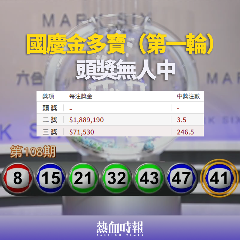 今晚(10月2日)攪珠的國慶金多寶(第一輪),估計頭獎基金達$75,000,000,結果頭獎無人中。