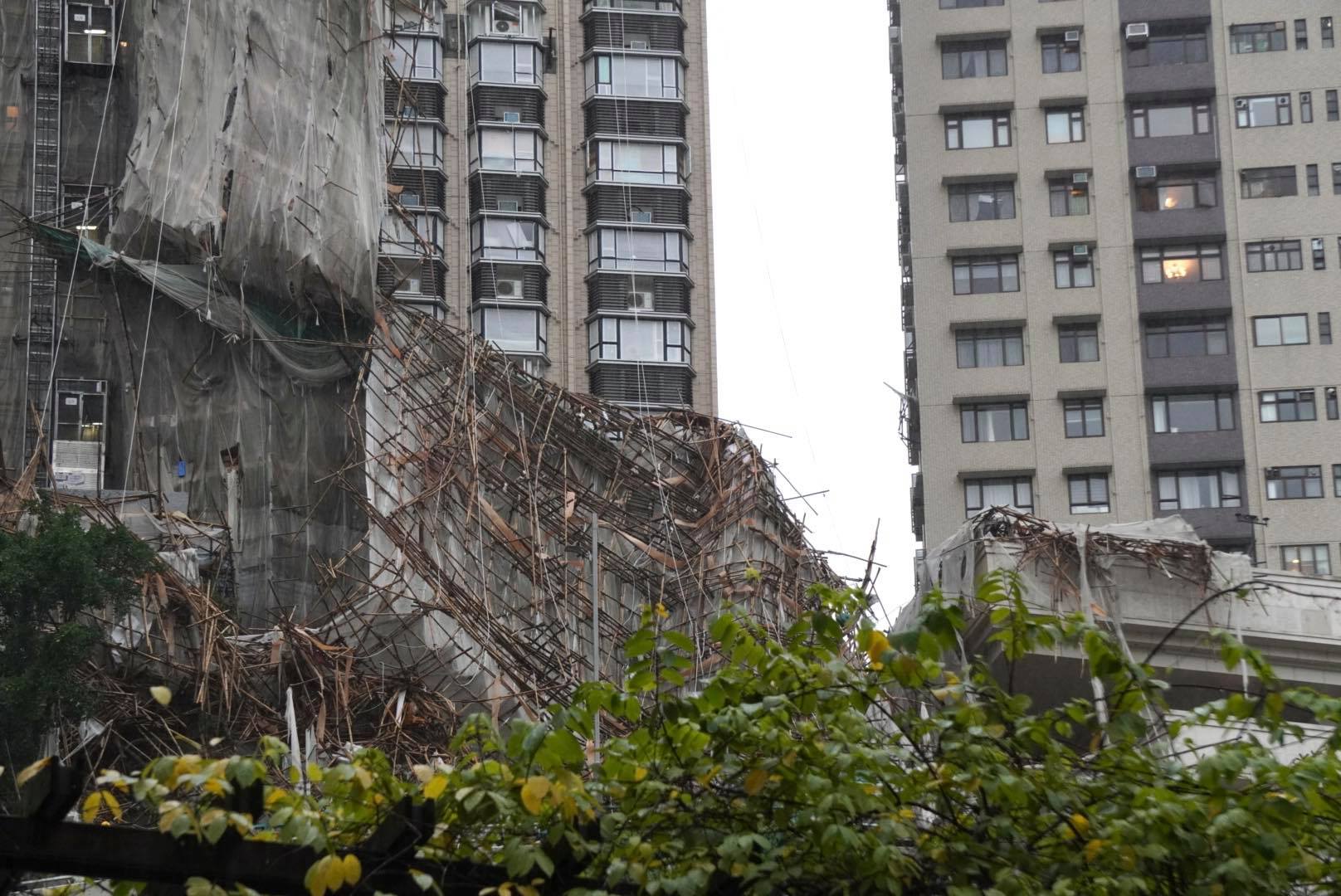 今晨(10月8日)跑馬地有大幅棚架倒塌,九人被困。消防員已救出兩名被困女工,一人受傷昏迷由救護車送往律敦治醫院搶救,另一人清醒經救護員檢驗後拒絕送院。