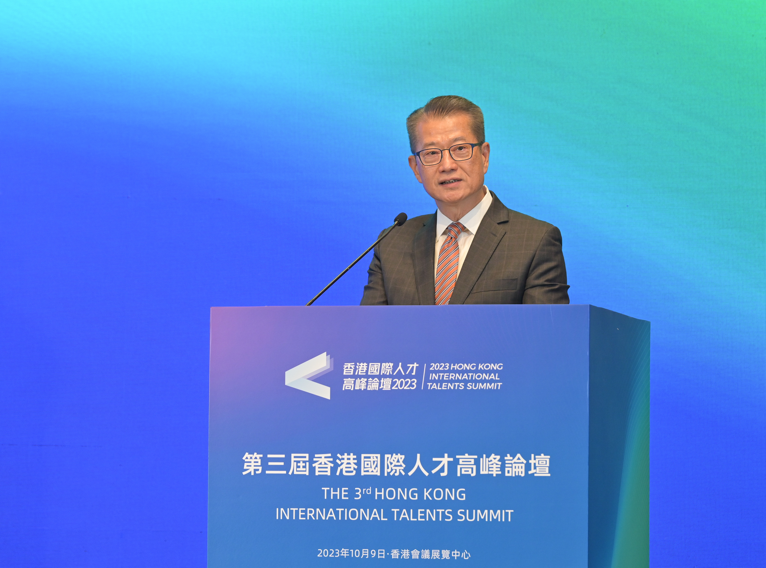 財政司司長陳茂波今日(10月9日)出席第三屆香港國際人才高峰論壇,致辭時稱樂意與大灣區兄弟城市攜手並肩,在人才發展上加強協同合作,讓人才助力彼此的發展,為灣區和國家的發展貢獻力量。
