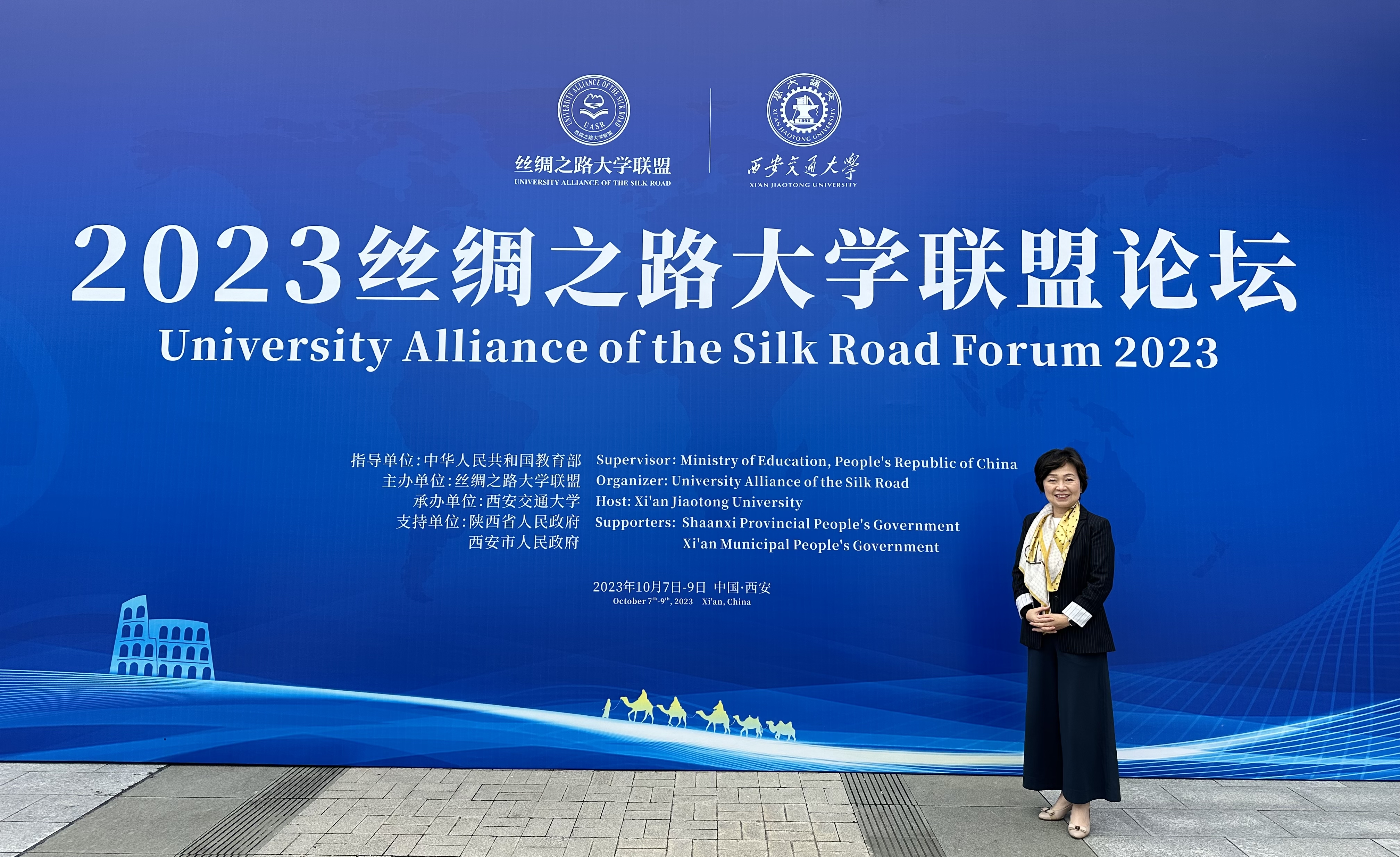 蔡若蓮博率領代表團10月8日上午出席2023絲綢之路大學聯盟論壇,與不同機構的領袖和來自21個國家或地區50多所大學的代表交流,探討產教融合與創新人才培養、數位技術與高等教育革新,以及「一帶一路」教育合作與人類命運共同體建設等議題。