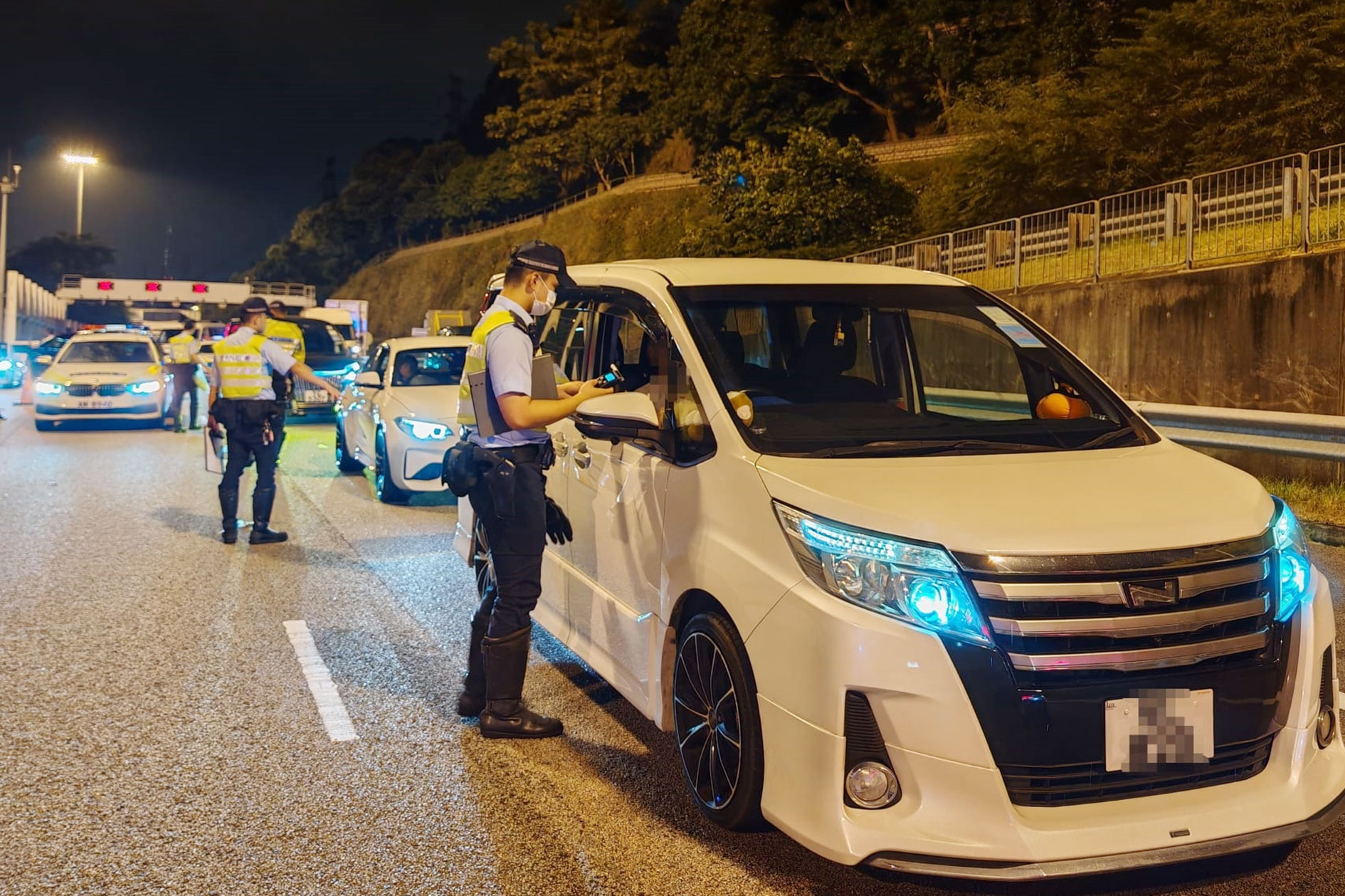 新界南交通部執行及管制組特遣隊人員於前日及昨日(10月10至11日),在區內主要幹道設置路障及重點巡查酒吧區,截查可疑車輛,並向駕駛人士進行酒精呼氣測試。