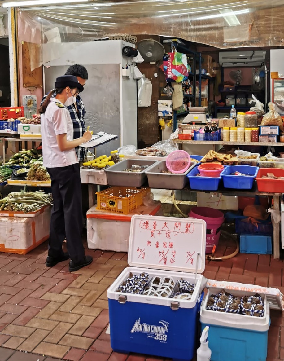 食環署今日(10月13日)於荃灣採取突擊行動,巡查二坡坊一帶的雜貨店,打擊非法銷售大閘蟹。