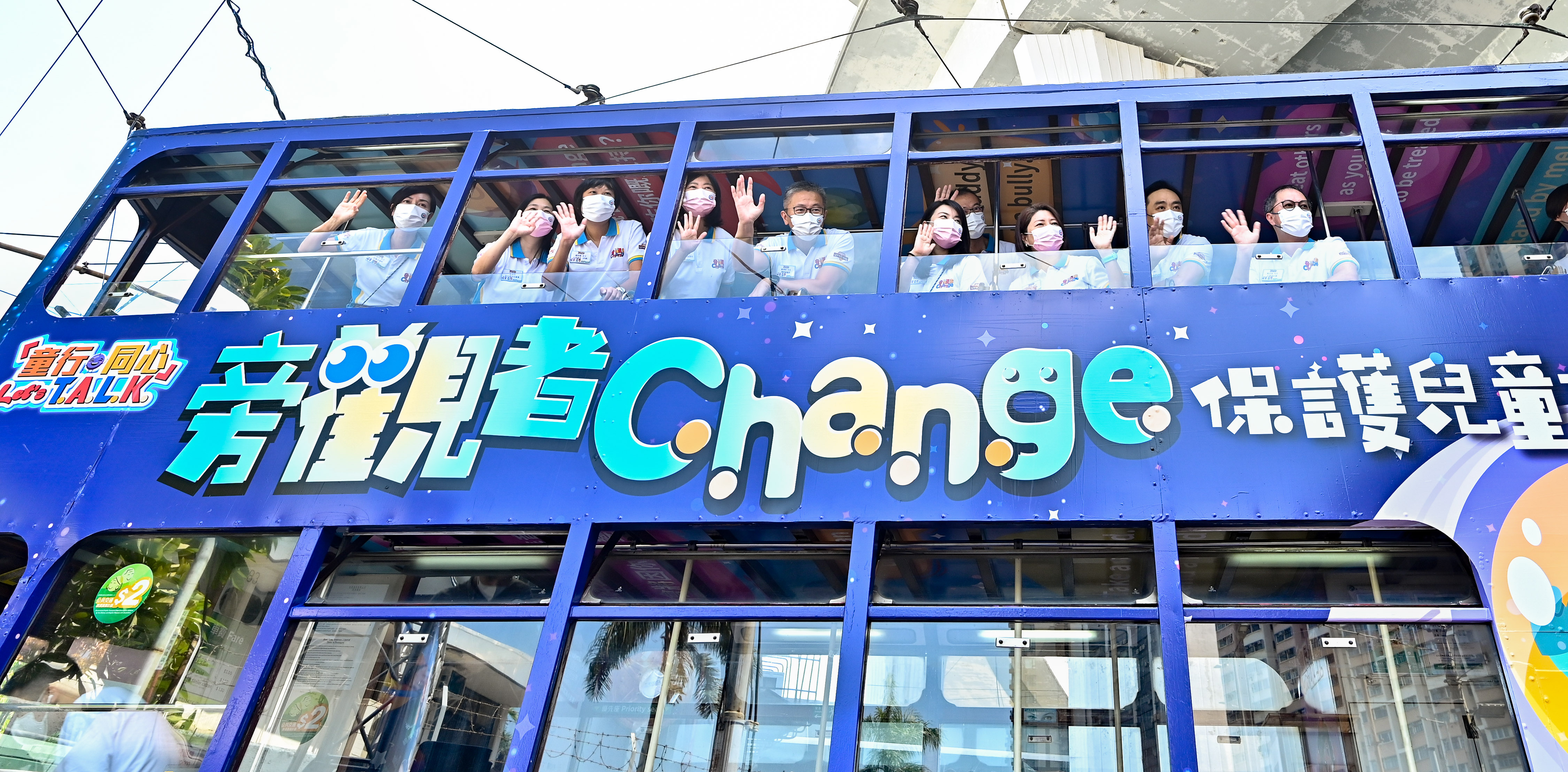 警務處今日(10月14日)於屈地街電車總廠舉行「童行‧同心」保護兒童計劃2022開幕禮。去年,警方首次舉辦「童行.同心」保護兒童計劃,今年以「旁觀者Change」為主題,呼籲社會各界及早介入虐待兒童事件。