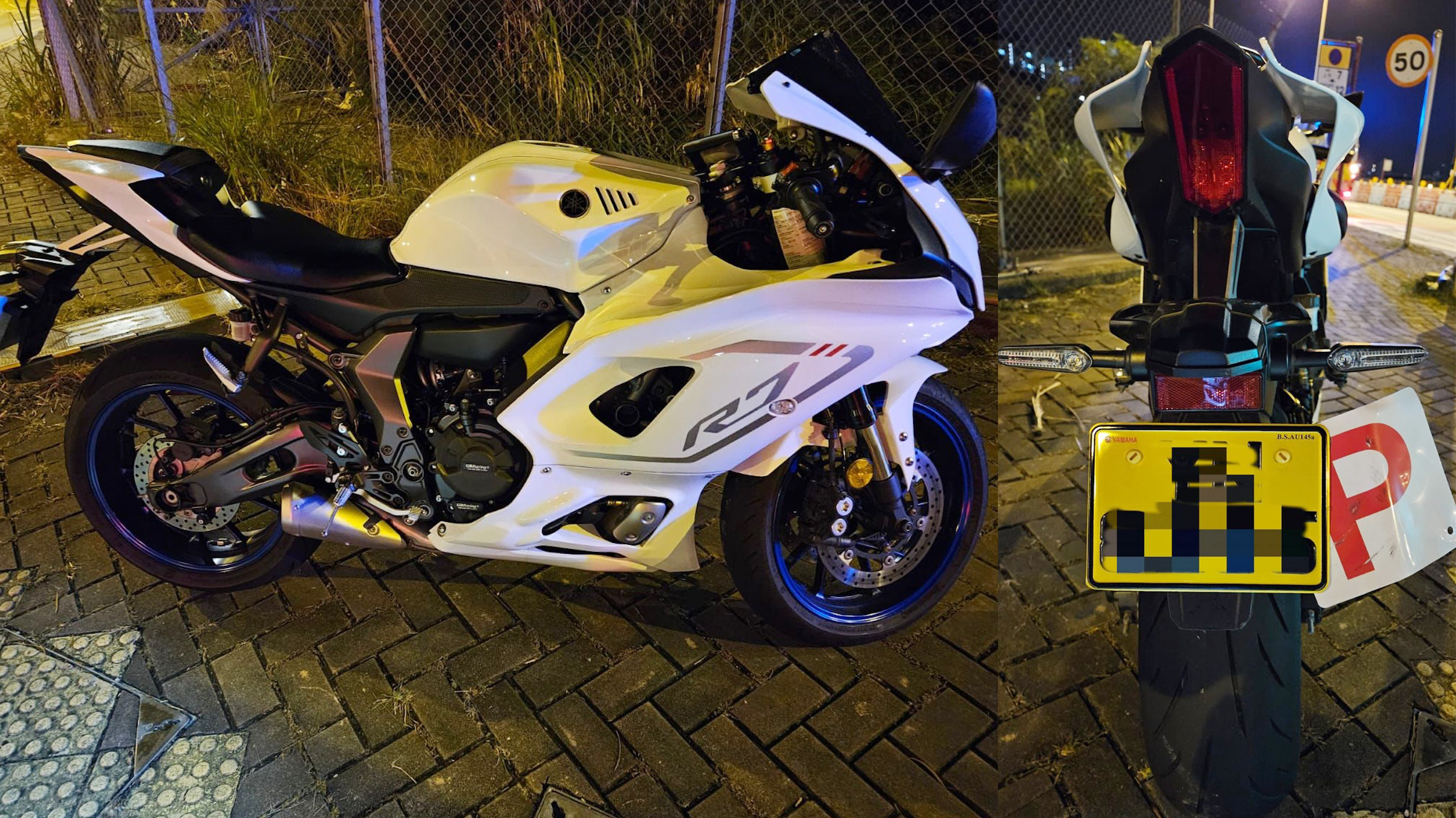 凌晨1時許,警員在清水灣道往九龍方向發現一輛白色大馬力電單車高速行駛,並在車群中穿插,隨即上前追截,警員最後在清水灣道近安秀道成功截停該輛電單車。經初步調查,該名29歲姓葉男司機持有暫准駕駛執照(P牌),涉嫌「超速駕駛」及「危險駕駛」被捕。