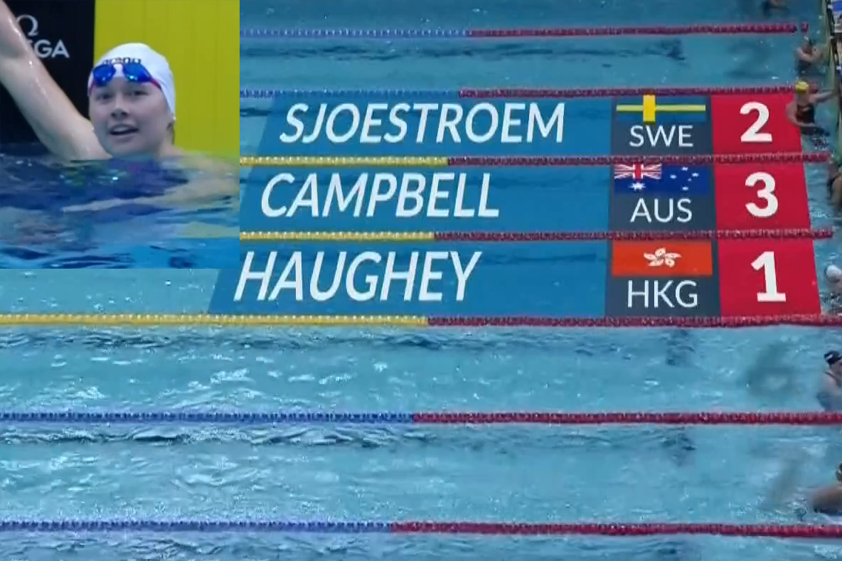 何詩蓓周日晚率先於女子50米蛙泳決賽上演,雖然這並非她的主項,但仍然以30秒36游得第2名,並平了自己保持的香港紀錄。