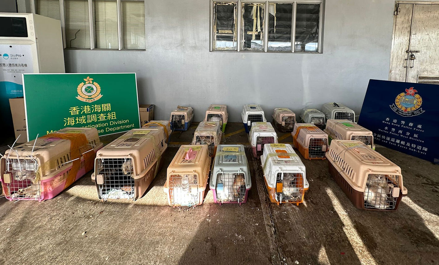 行動中,人員在貨車內發現共62隻貓及13隻狗,分別被困在17個寵物籠內。經點算後,相信該批走私貓狗共值約120萬港元。