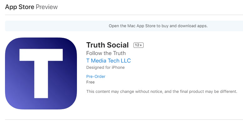 根據公布,「Truth Social」App目前已可在蘋果手機App Store預約,計劃11月推出Beta測試版本,供獲邀人士使用。