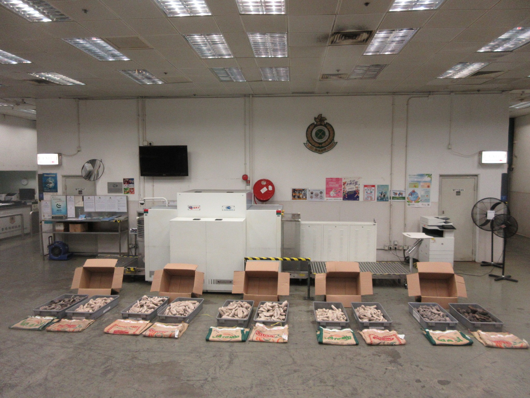 海關當日根據風檢評估於機場海關驗貨場檢查一個從沙特阿拉伯進口,報稱載有魚乾的空運貨物。經查驗後,海關人員在其中5個紙箱內檢獲該批懷疑受管制海參,一名貨物收貨人被捕。