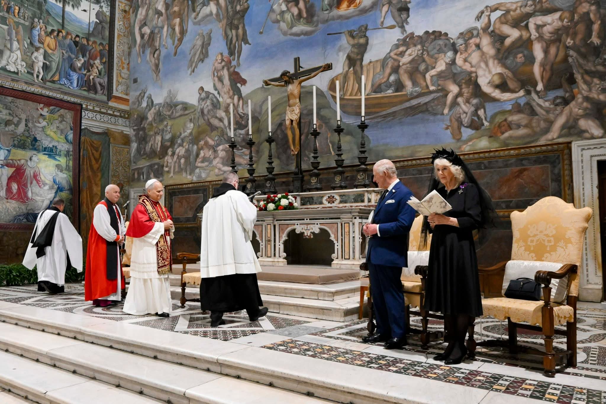 這場儀式由教宗良十四世主持,英國國教會現任高級神職人員、約克大主教柯特利爾一同參與。在禮拜堂前排,查理斯三世及皇后卡米拉,與教宗及大主教並肩而坐。