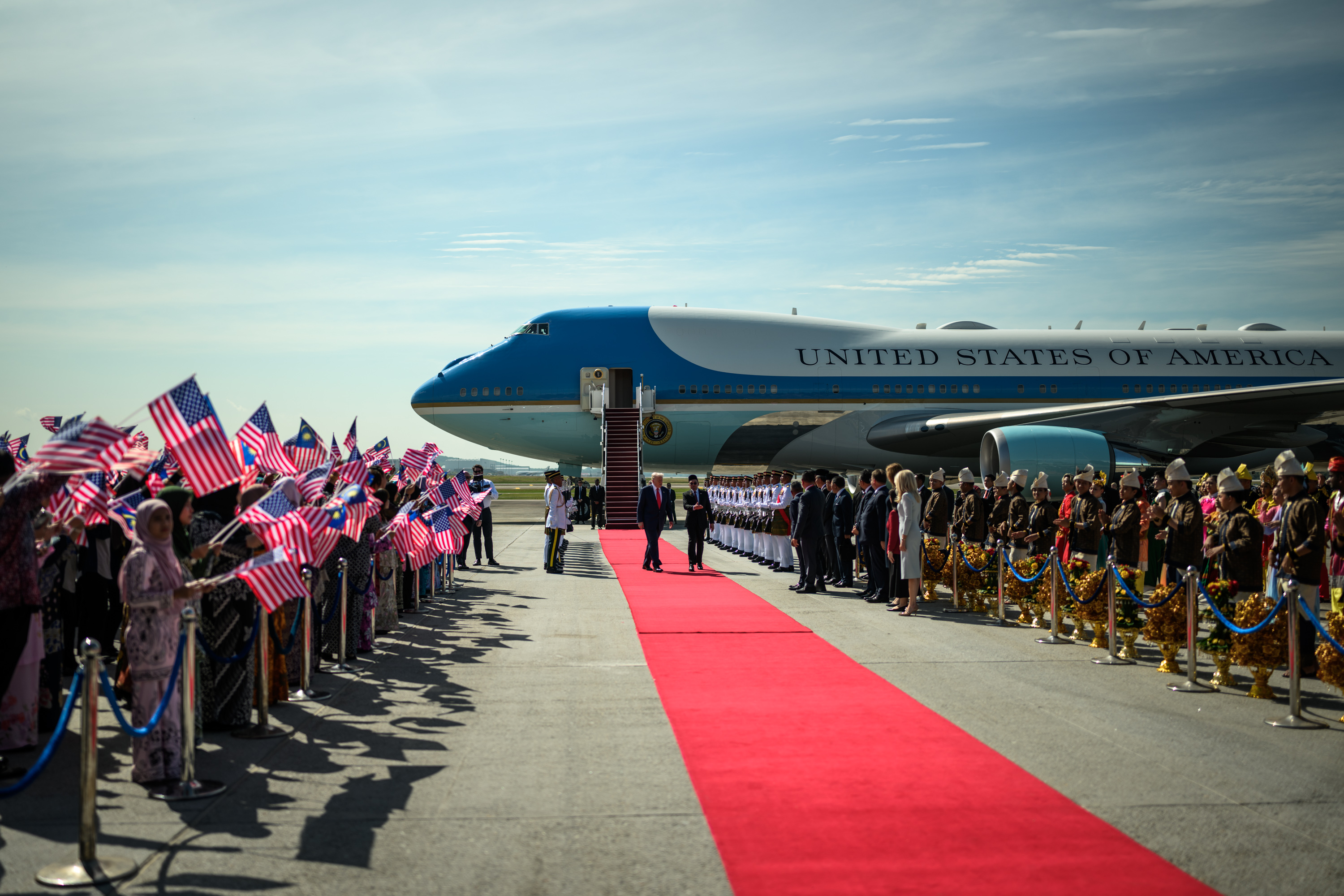 美國總統特朗普抵達馬來西亞,展開亞洲訪問行程首站。