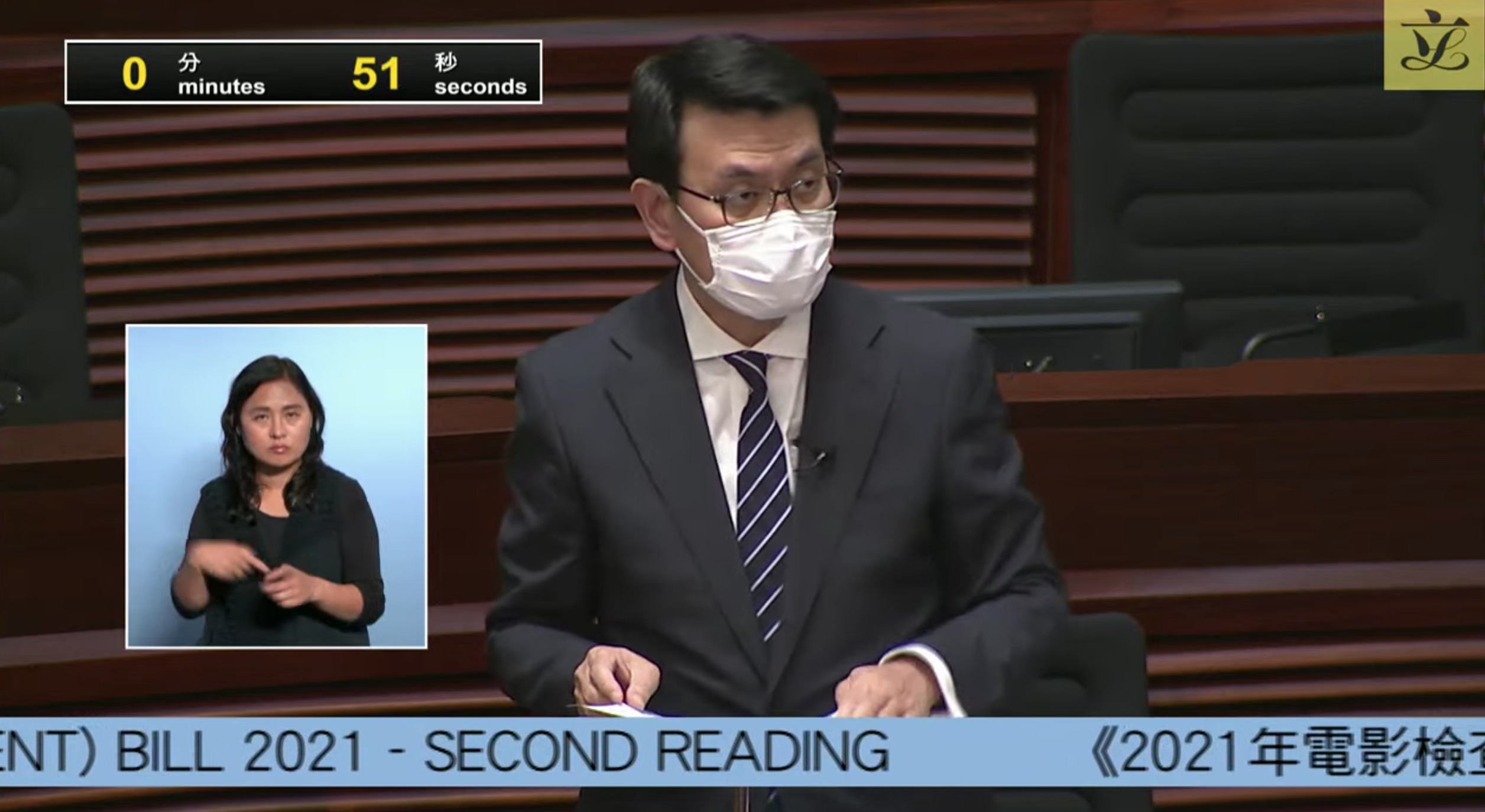 商務及經濟發展局局長邱騰華認為修例的目的簡單直接,完善電影管理制度,能有效防範及制止任何危險國家安全的行為;他指局方今年6月已更新電影檢查員指引,但單以行政指引並不足夠,需要修例訂出更清晰的規定。