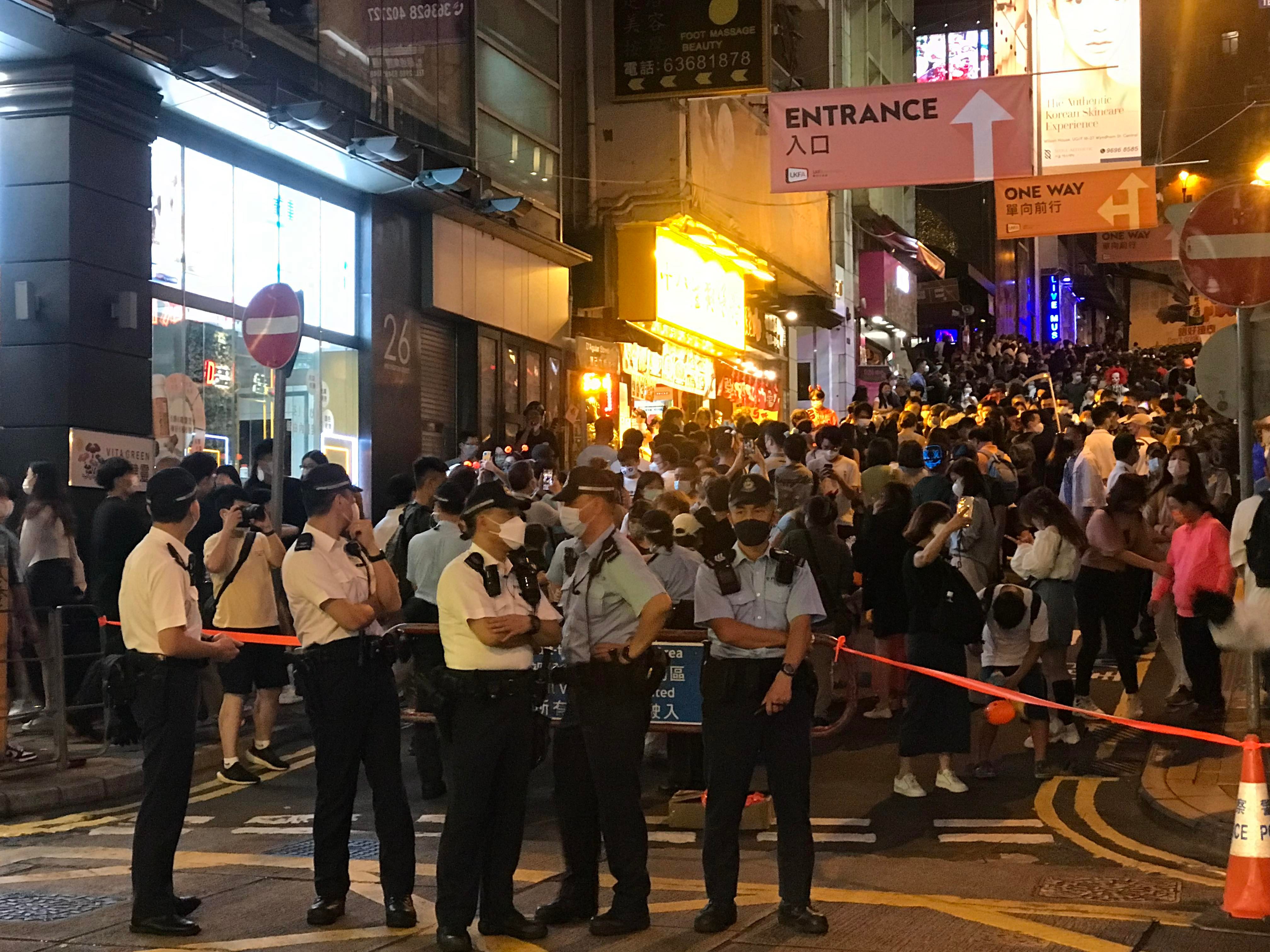 警方在周四下午2時起,在蘭桂坊分階段實施人流管制措施,並在區內設立緊急通道,入夜人流增加時將實施單向人流管制,以及封閉部份出入口。