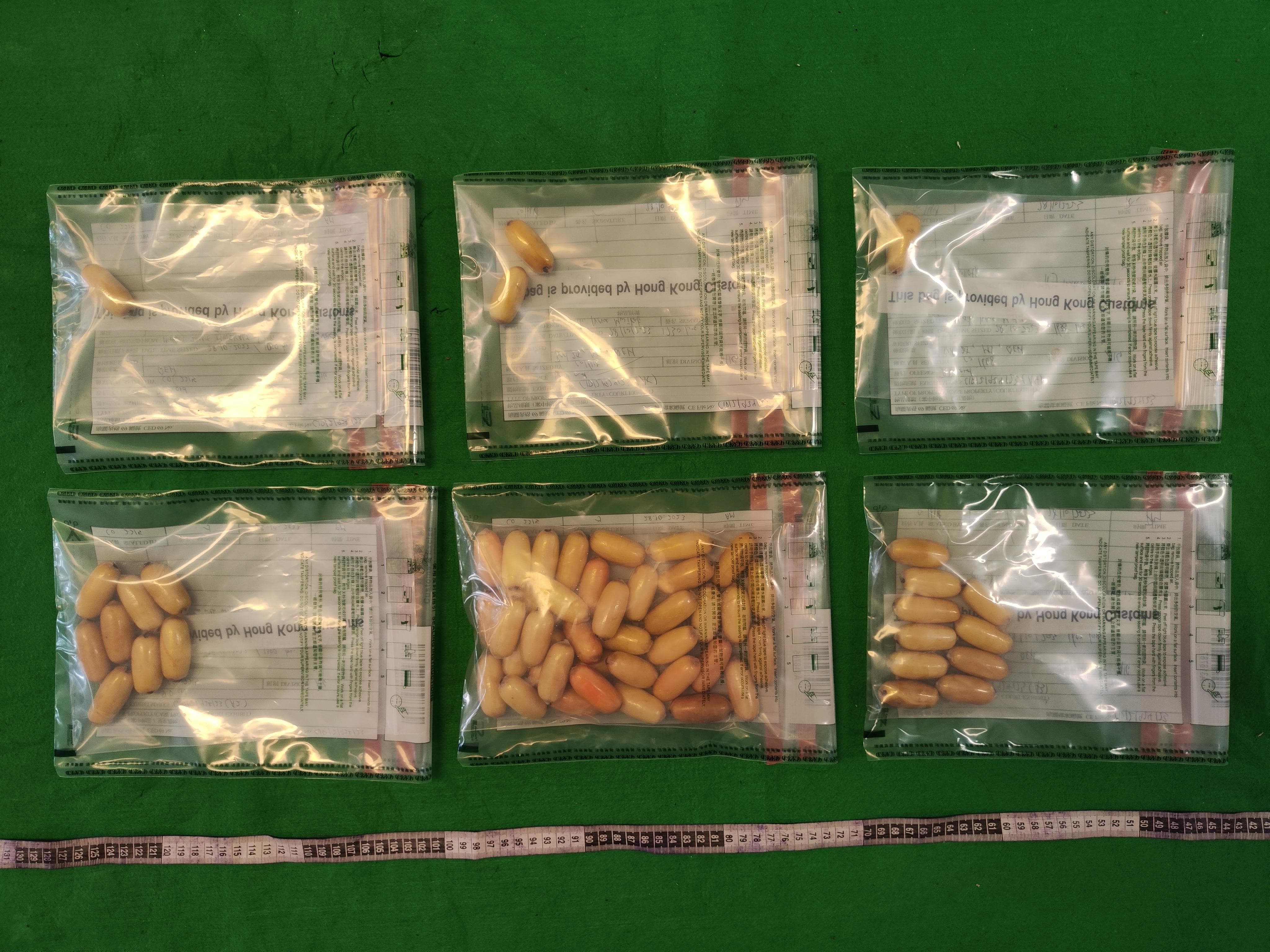 一名30歲的女旅客當日從剛果民主共和國金沙薩,經埃塞俄比亞亞的斯亞貝巴飛抵本港。海關人員替該名旅客進行清關期間懷疑她體內藏有毒品,遂把她帶到醫院檢查。