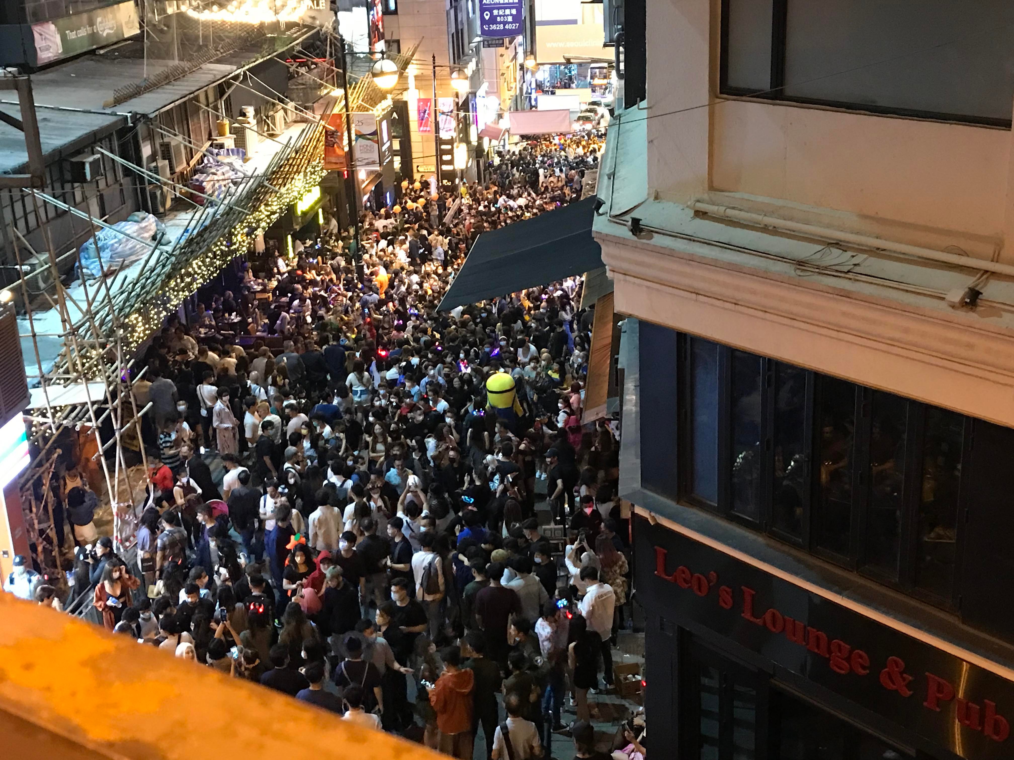 警方中區警區助理指揮官(行動2)周詠儀警司表示,蘭桂坊一帶多斜路樓梯,不希望市民於現場過份停留聚集產生危險,明白人流管制下市民需要多行一步或輪候進入,希望市民體諒。